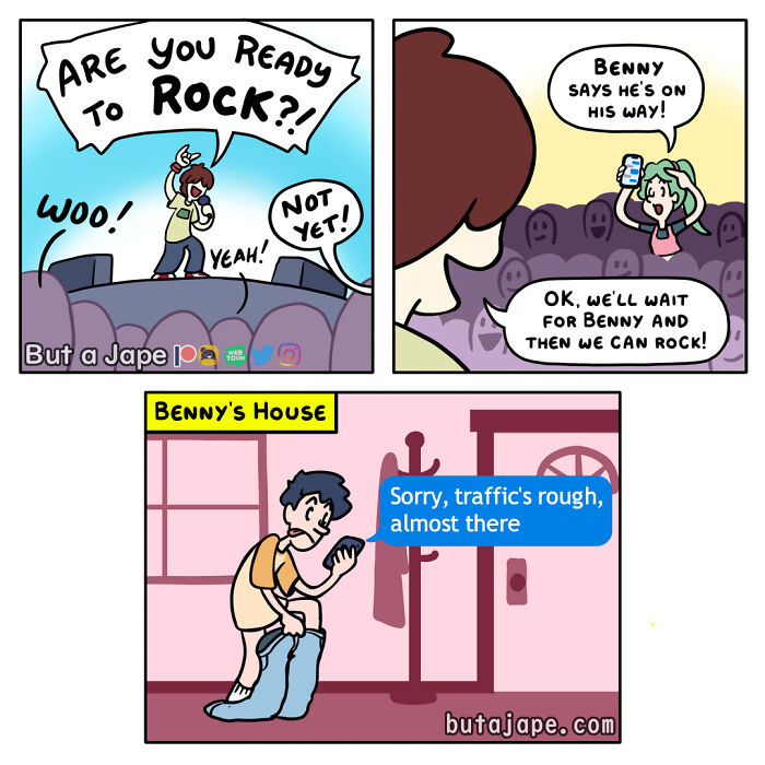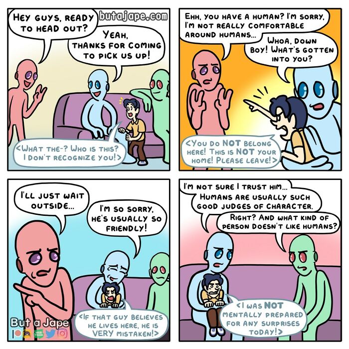 “But a Jape” is a webcomic created by James P. Sandoval. It showcases a variety of short, humorous strips often centered around absurd or unexpected situations. Known for its vibrant illustrations and clever wordplay, the comic has gained popularity across multiple websites and social media platforms. Critics have praised it for its originality and humor, and it has even been translated into several languages. With a keen eye for the ridiculous, James uses simple yet expressive illustrations to capture the essence of comedy.