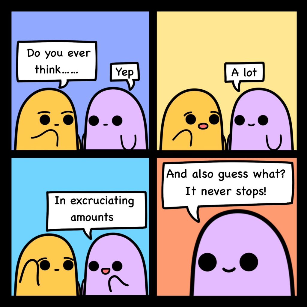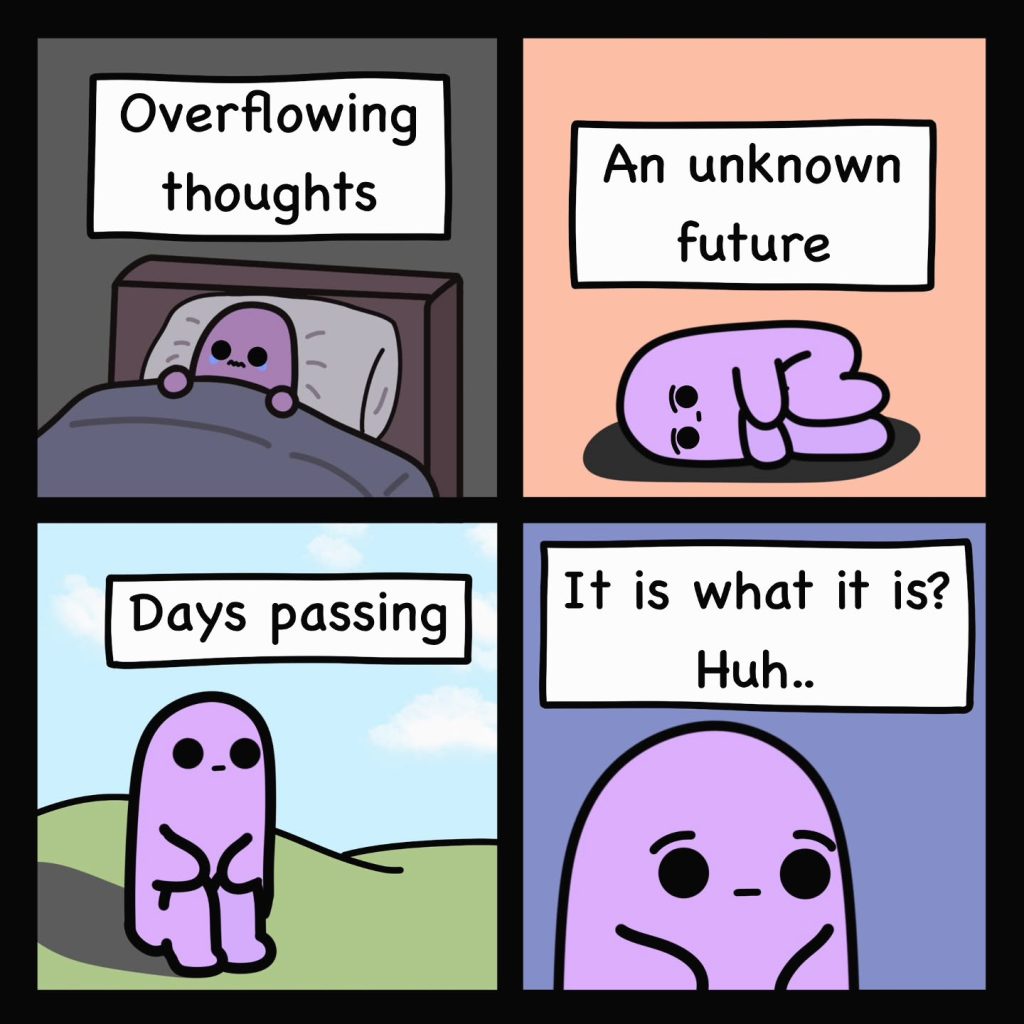 Half-Thought Comic is an Instagram account featuring random comics created by an anonymous artist. Known for their relatable humor, simple yet effective artwork, and unique perspective, these comics often portray various characters and situations, all highlighting the absurdity of everyday life. With over 331,000 followers on Instagram, the account serves as a reminder that it’s okay to laugh at ourselves.