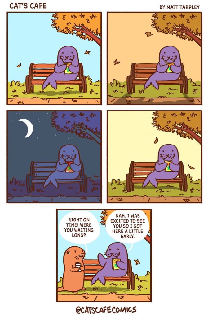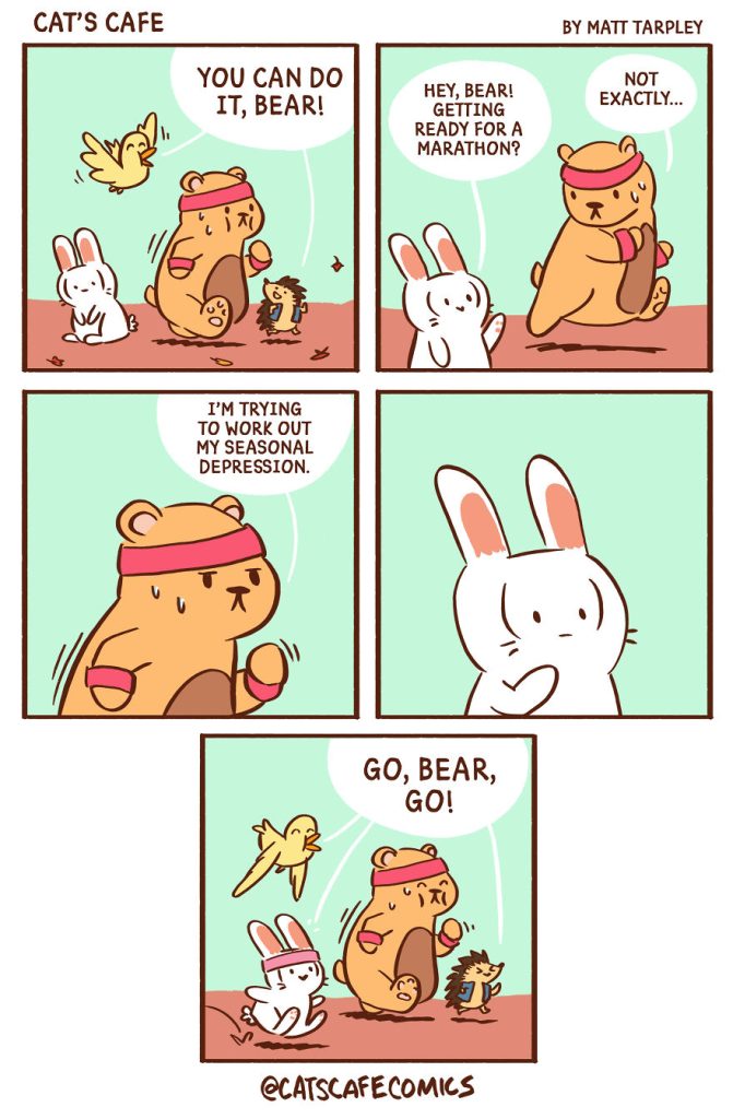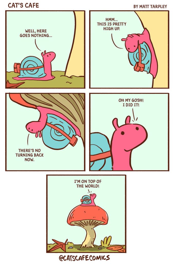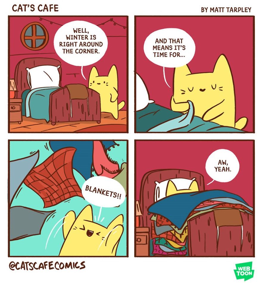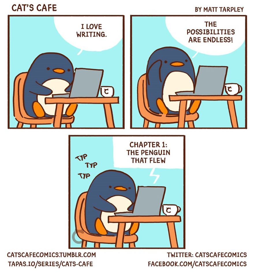 Today, we’re excited to introduce another artist who created a heartwarming webcomic series in December 2017 called Cat’s Cafe Comics. This wholesome series centers around a small coffee shop where local animals come to relax. The creative mind behind this lovable webcomic is artist Matt Tarpley. These delightful comics feature a variety of cute animals, and the artist says they’re guaranteed to brighten your day, just like a good cup of coffee.