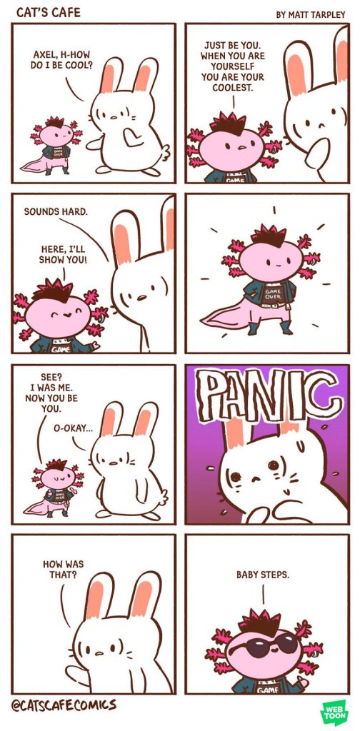 Through these charming animal characters, the artist tackles important themes such as fear, diversity, and empowerment with a thoughtful twist. Cat’s Cafe promotes acceptance and understanding, creating a quiet space where everyone—whether characters or the 362k followers—can feel welcome. Let’s take a look at some of his heartwarming comics in the following section.