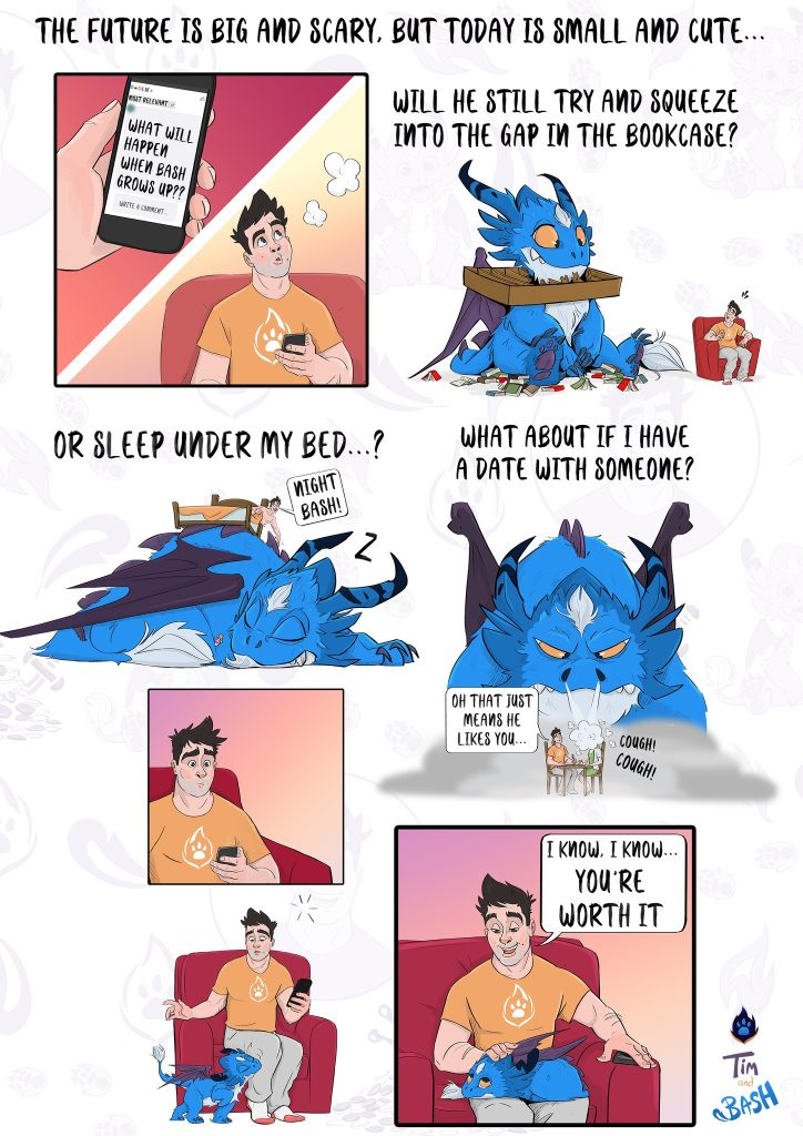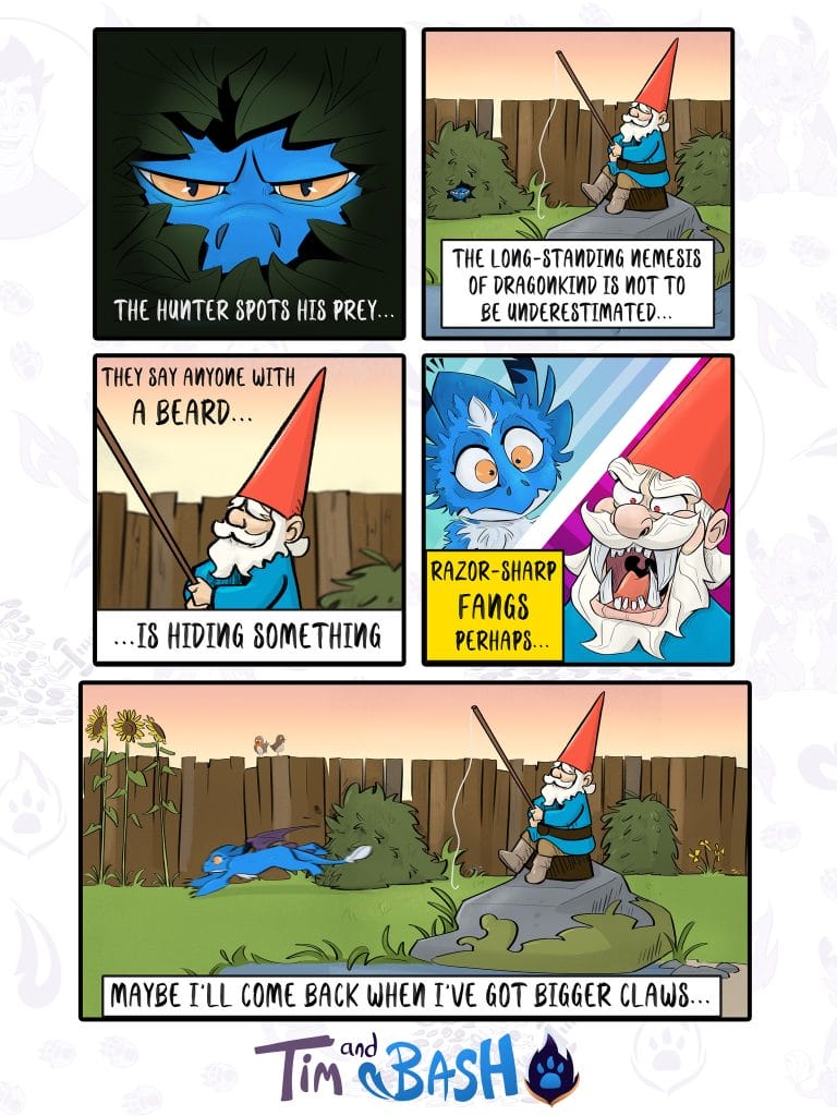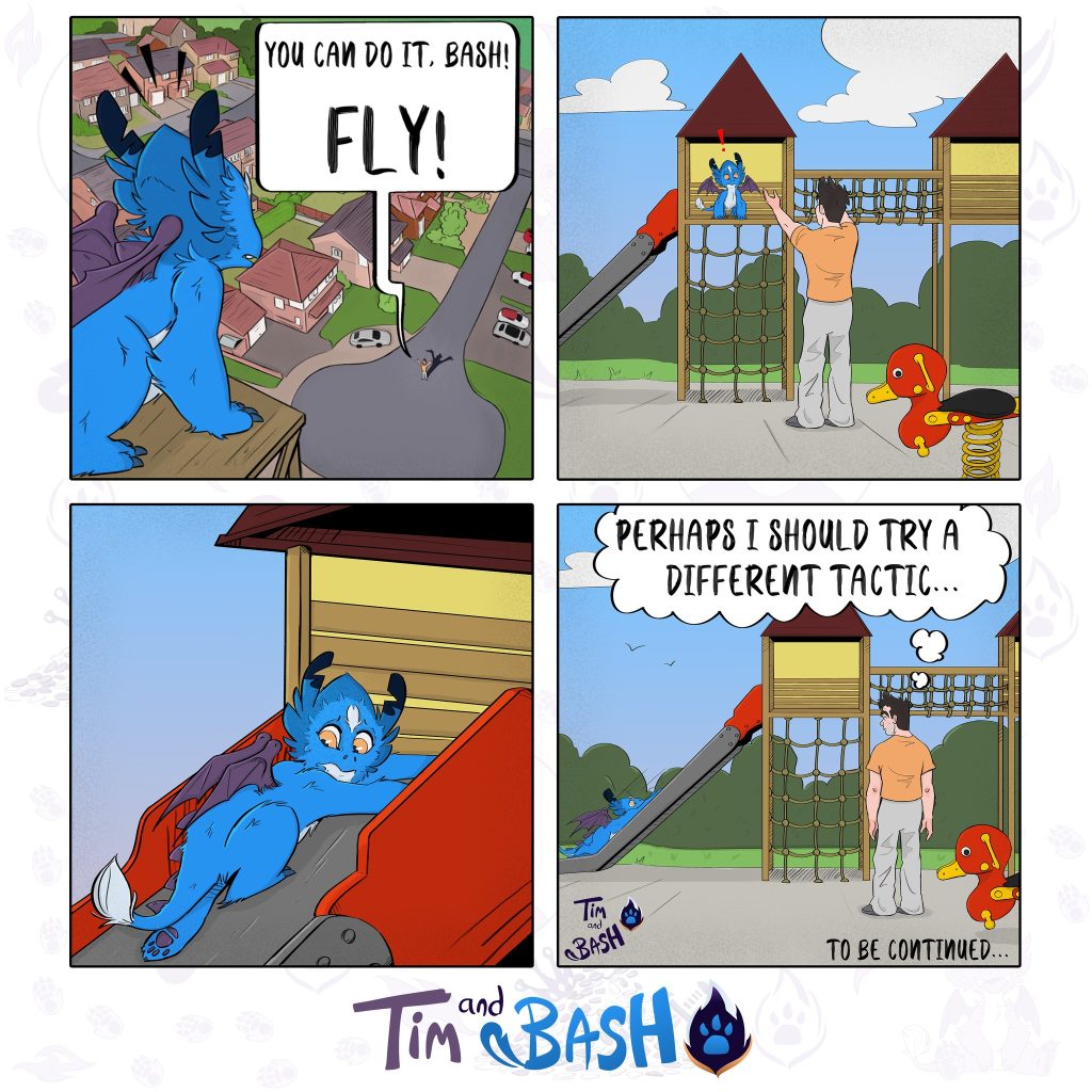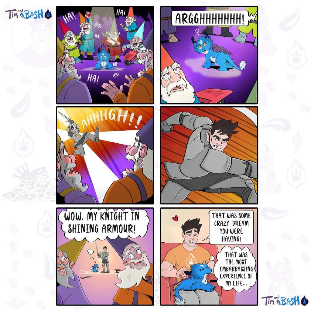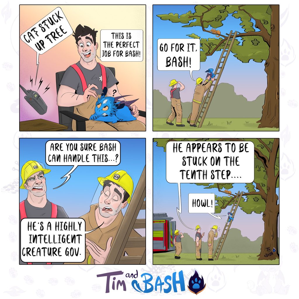 This comic series takes readers on a journey filled with humor and excitement as we follow Bash’s antics and Tim’s patient guidance. Tim, the firefighter with a big heart, creates a supportive home for the playful, fire-breathing Bash. As they navigate their lives together, the comic beautifully portrays their growing friendship. Tim’s steady hand helps Bash channel his mischievous energy, while Bash adds magic and whimsy to Tim’s otherwise ordinary world. Tim and Bash is a heartwarming and entertaining series that promises to continue captivating fans, with readers eagerly awaiting each new adventure.