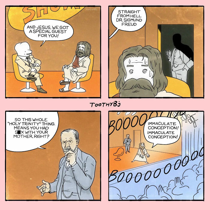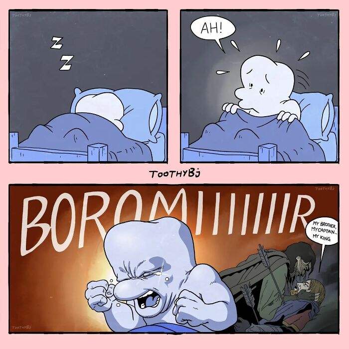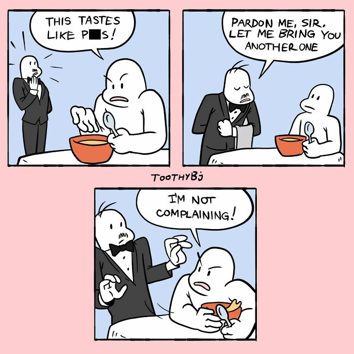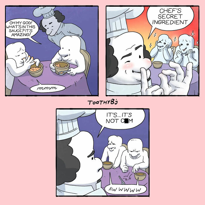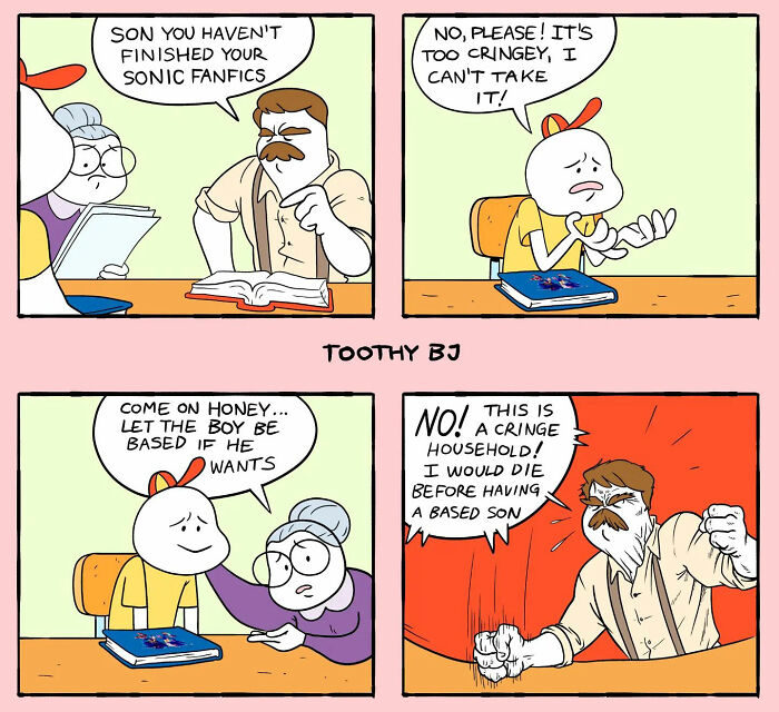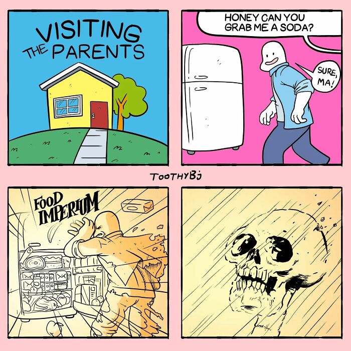Toothy.bj is a webcomic artist known for creating dark, humor-filled comics that have gained popularity on Instagram. Dive into the comedic world of Toothy.bj, a master of dark humor with 128,000 Instagram followers. Get ready for a mix of amusement and slight unease as you explore his collection of comics, where unexpected twists and wicked wordplay take center stage. Toothy.bj’s brand of comedy is far from ordinary. With a knack for the absurd, he skillfully weaves the bizarre into everyday situations, leaving readers laughing out loud at each panel.