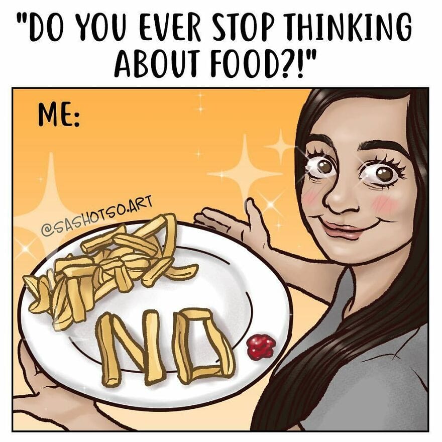 Sasha Tsoy began her career as a graphic designer but later transitioned into digital illustration. She started sharing her work online in 2016, and her popularity grew rapidly. Since then, she has collaborated with several well-known brands, including Nike, Converse, and Adobe. By depicting relatable situations, her comics validate the common challenges, quirks, and dynamics that couples experience. Sharing these comics with your partner can help you feel understood and less alone, reinforcing the idea that you’re both navigating similar paths.