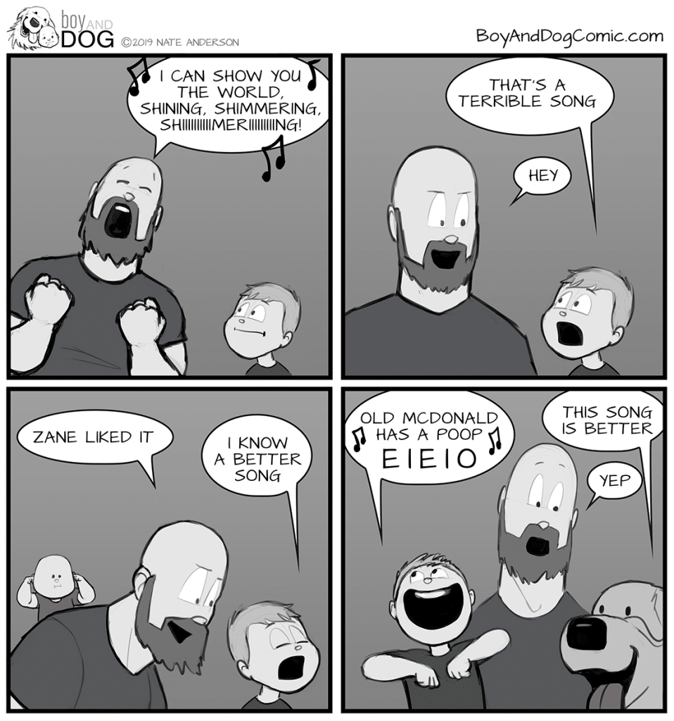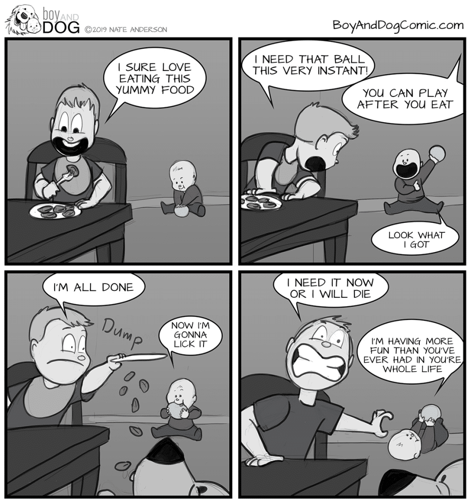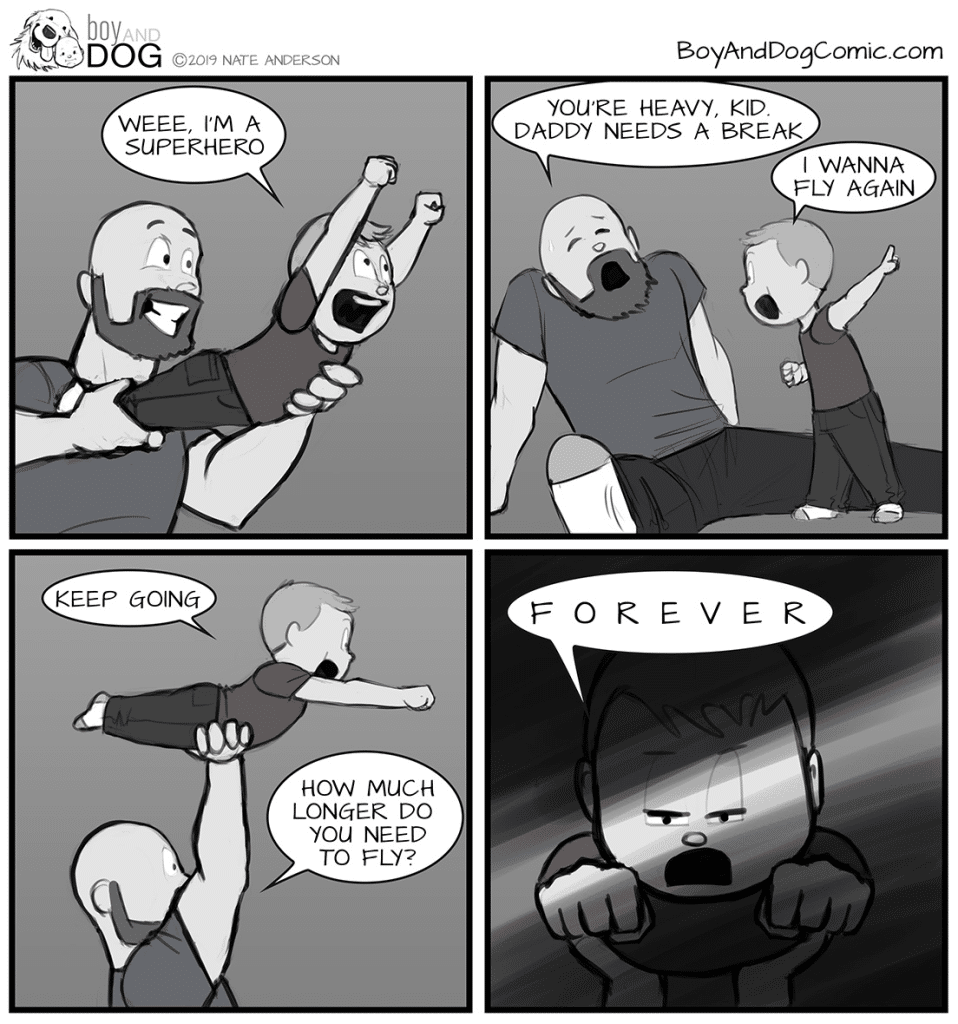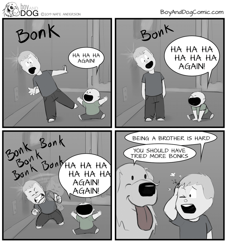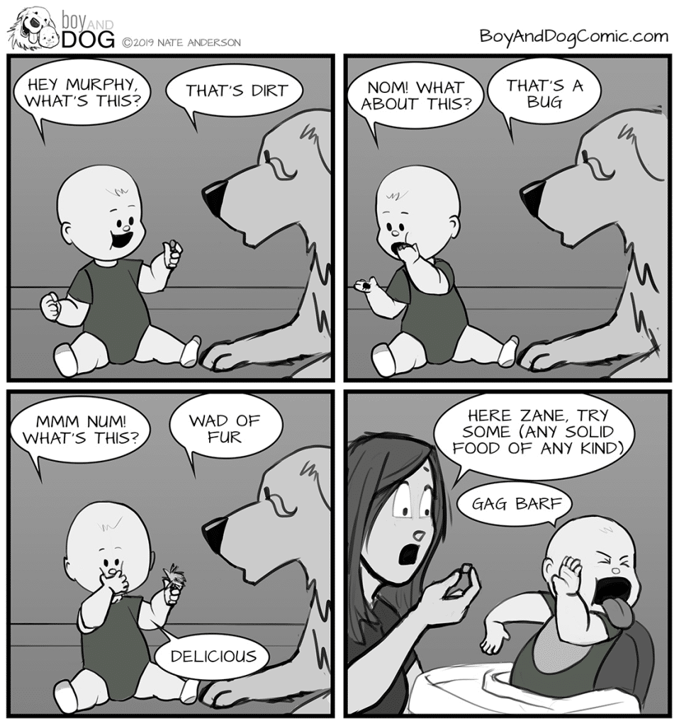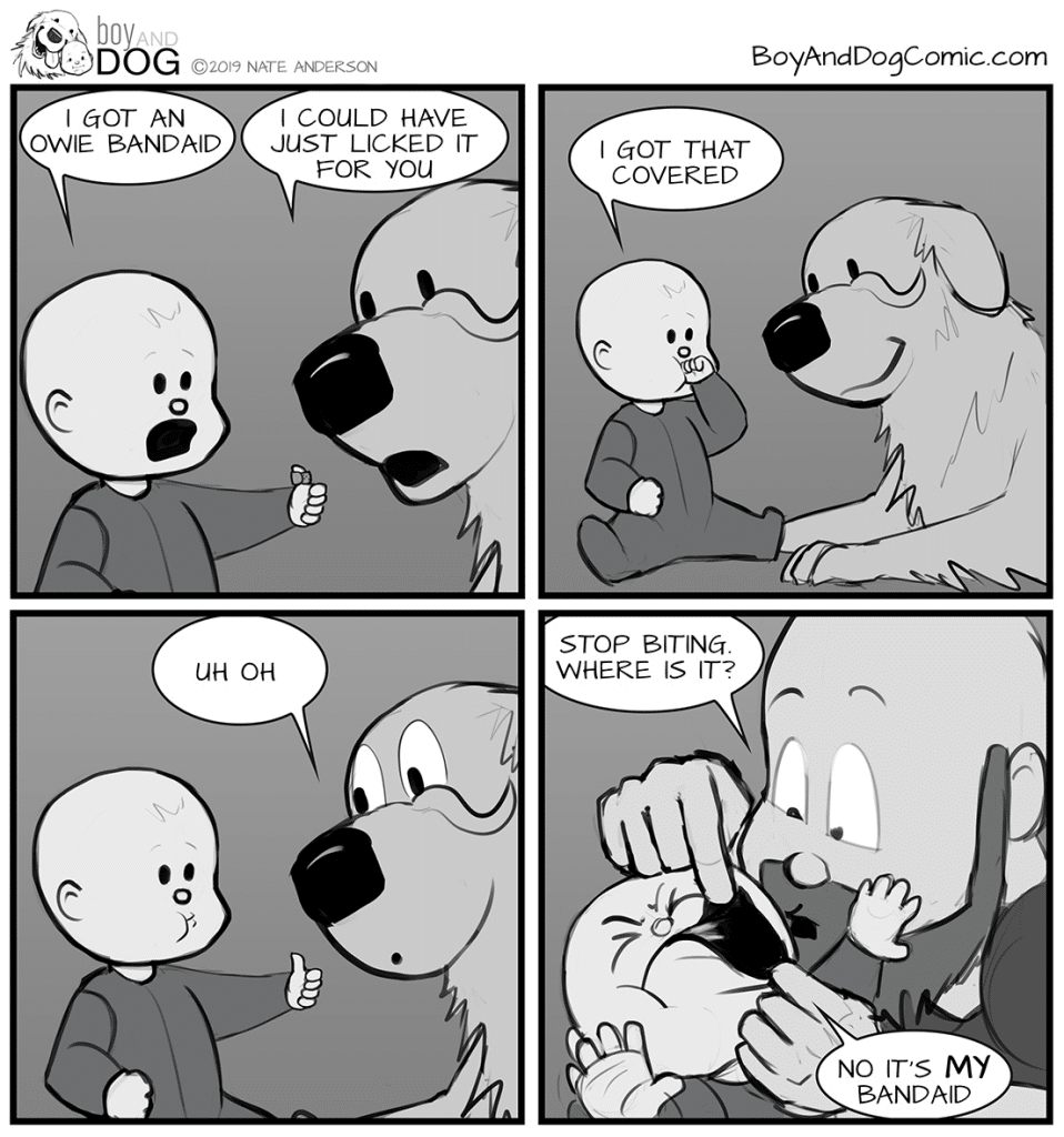 His attention to detail and ability to capture genuine emotions make his comics captivating. They often evoke a sense of nostalgia, reminding readers of their cherished memories and the special connection they share with their pets. Nate Anderson’s knack for capturing the small, heartwarming moments of everyday life allows readers to connect with the joys and challenges of raising a child alongside a beloved dog. Along with the visual storytelling, Anderson’s comics often include endearing, relatable dialogue that deepens the emotional impact. The conversations between his son and their dog reflect childhood innocence and curiosity, as well as the unwavering loyalty and unconditional love dogs provide.