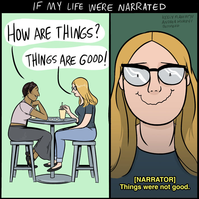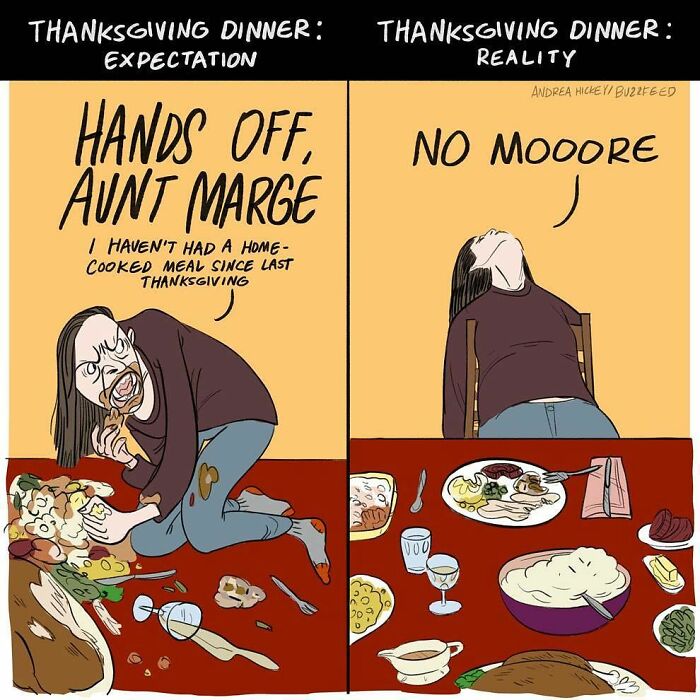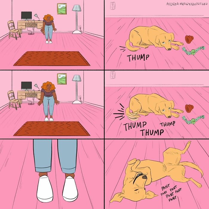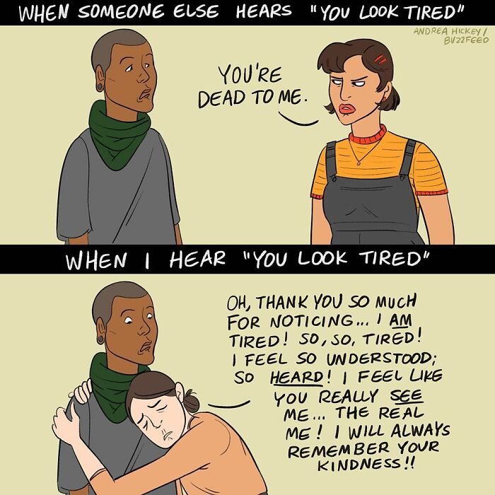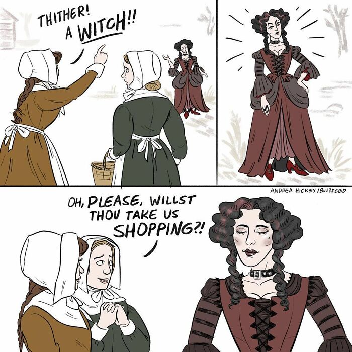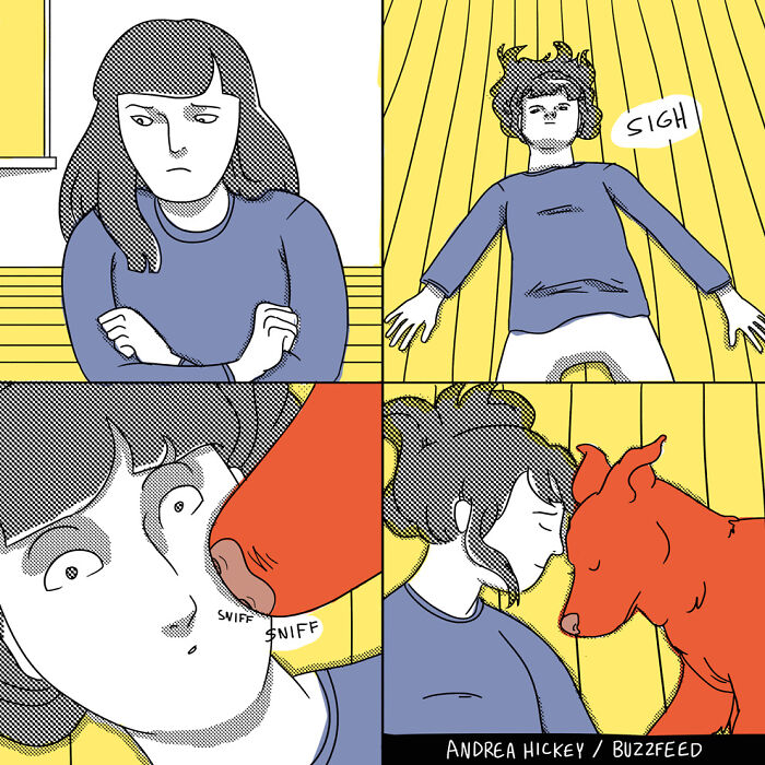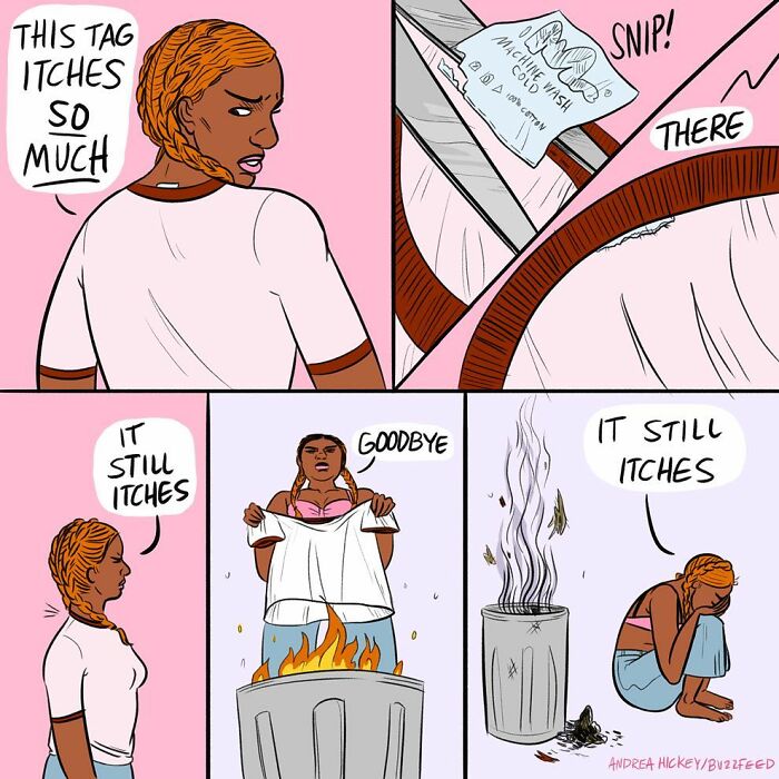 We reached out to Andrea to dive deeper into her comic journey. She opened up about what inspired her to begin creating comics: I started drawing little comics for my friends in high school, exaggerating funny situations that happened in class. I was always doodling on handouts while my teachers were talking, and my best friend and I passed elaborate drawings back and forth during study hall I even posted about that on BuzzFeed. I also created some detailed pieces of art in M.S. Paint RIP. Eventually, I had the chance to draw comics professionally as an illustrator at BuzzFeed.