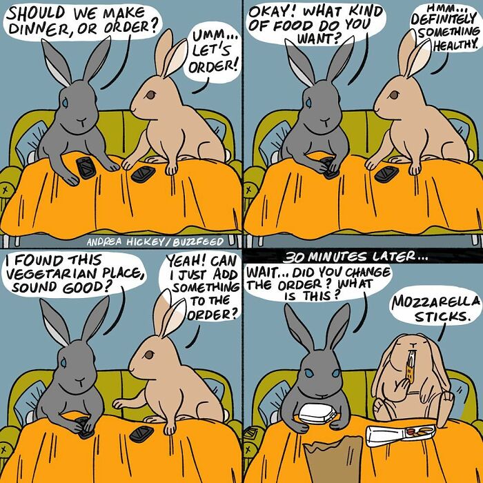 Hickey shared more about the beginnings of her artistic career. While video content was booming at BuzzFeed LA there was a strong push in the New York office, where I worked to create original content in other formats. The illustrators were encouraged to develop comics that followed BuzzFeed’s relatable content style catering to their broad audience and specific niches like food books, beauty entertainment style, and more. Just like with our regular posts, we were always experimenting to see which topics and jokes sparked the right emotional reactions in our comics.