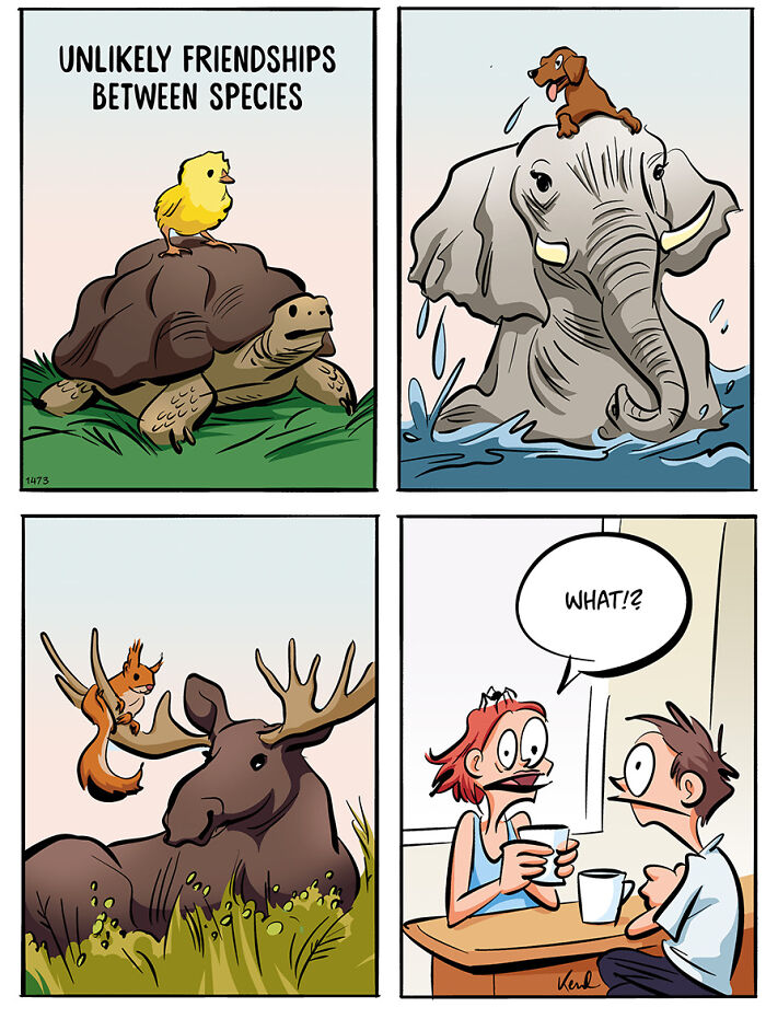 Kenneth Larsen, an artist with a knack for capturing the hilarious and chaotic dynamics of friendship, brings his bond with his best friend Martha to life through his comic, Bestie. The comic beautifully showcases the unpredictable and funny moments that come with their lifelong friendship. Whether it’s pulling off sneaky pranks or jokingly backstabbing one another, their bond is filled with mischief, laughter, and endless moments of annoyance that only the closest friends can truly understand. What makes Bestie stand out is the relatability of the characters. The pair’s sibling-like camaraderie is the foundation of the comic, making it all the more fun to follow. Kenneth’s humorous illustrations not only capture the lighthearted moments of their friendship but also reflect the unspoken understanding between the two. The comic has quickly gained popularity, garnering over 105K followers on Instagram and even expanding into a book. If you’re someone who appreciates the chaotic yet deeply connected nature of friendship, Bestie is a must-see.