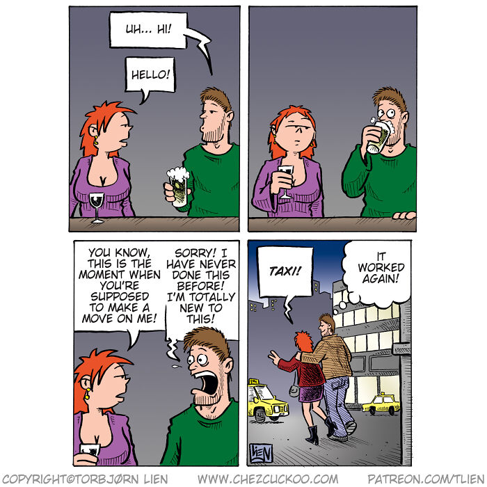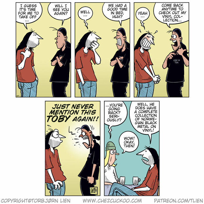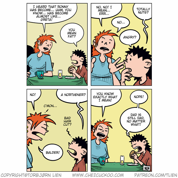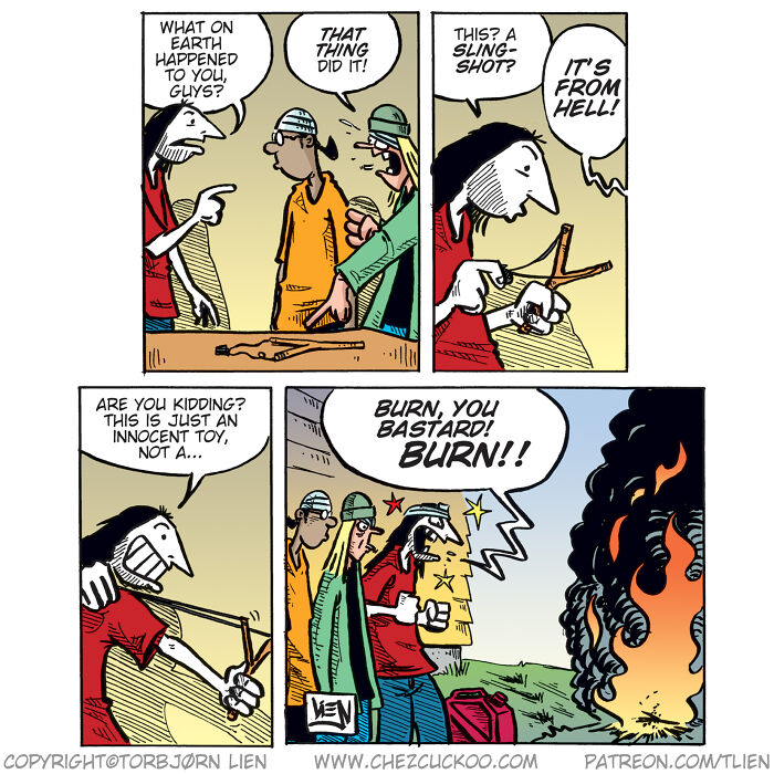 Chez Cuckoo is a comedic webcomic that brings together a variety of quirky characters each caught up in all kinds of humorous mishaps and unexpected situations. Whether it’s an epic disaster or a small screw-up the hilarious dynamics between these unique personalities make for endless entertainment with readers getting a chance to laugh at the chaos they create together. Created by Norwegian artist Torbjørn Lien the comic was born out of a desire to explore contrasting personalities and the comedic potential of their interactions. As Torbjørn shared, I wanted to make the characters as different as possible to play them off each other and see what kind of humor came out of it. All the central characters are a bit based on various sides of myself I think. But they are also inspired by various people I’ve known over the years, and a lot of pure imagination. With characters that feel like a mix of personal reflections and real-life influences, Chez Cuckoo offers a humorous glimpse into the messes we all can get into all wrapped up in charming illustrations. Dive into the post to enjoy the latest comics and be sure to check out short descriptions of the characters as shared by Torbjørn to better understand the personalities that bring the chaos to life.