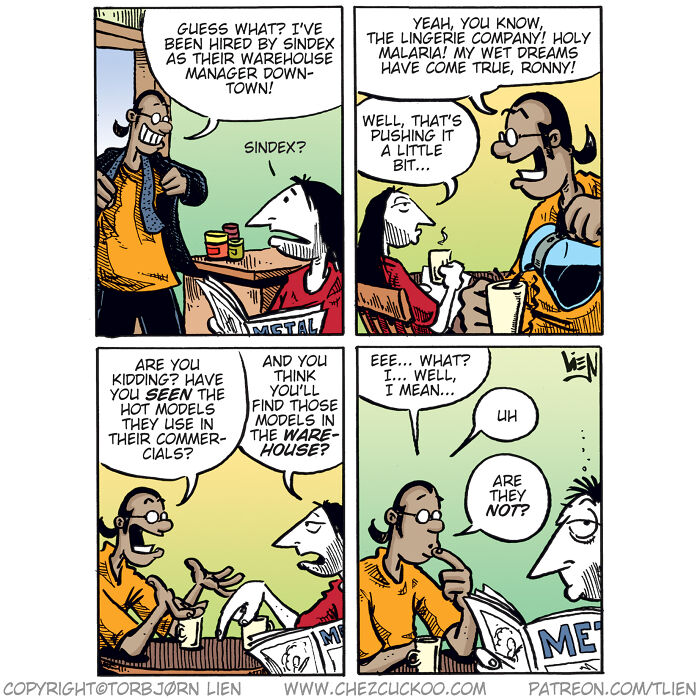 Torbjørn Lien the artist behind Chez Cuckoo revealed the influences that shaped his distinctive drawing style. He explained that his initial inspiration came from classic American newspaper comics such as Beetle Bailey by Mort Walker, Redeye by Gordon Bess, and Hagar the Horrible by Dik Browne. As he grew as an artist Bill Watterson the creator of Calvin and Hobbes had a profound impact on how he approached creating comic strips. In addition to these American influences, Torbjørn also admires classic European comic artists like Moebius Franquinand Mezieres whose works continue to inspire his artistic journey.