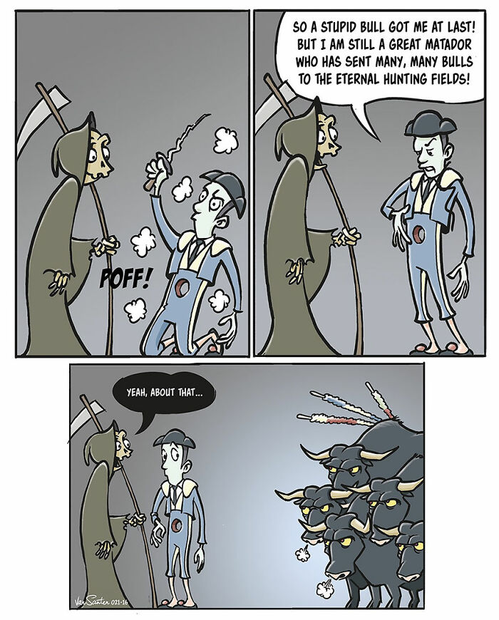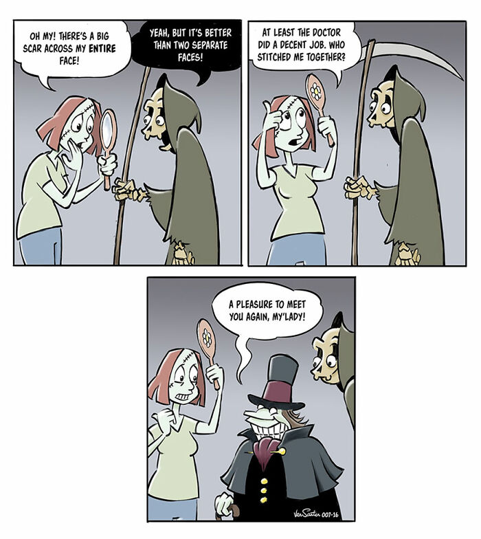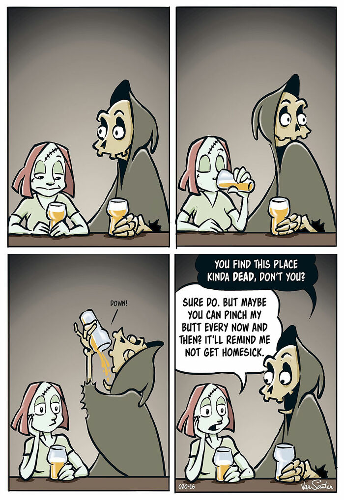 What happens after we die? It’s a question that has crossed many minds and Norwegian artist Jorgen Van Santen decided to explore it through humor of course. In his comic series Death & the Maiden, the cartoonist introduces us to an unconventional afterlife starring none other than Death itself and a young woman who passed away in an accident. Together, they navigate the quirks of the other side uncovering its perks challenges, and the hilarious contrasts between the living and the dead. If you missed our previous posts featuring this series be sure to check them out. Now, scroll down and enjoy the latest comics we’ve handpicked for you today.