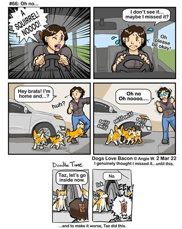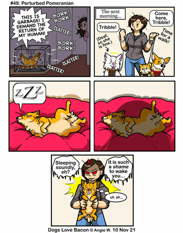 If you’re a dog lover Dogs Love Bacon is the webcomic you need to check out. This heartwarming and hilarious series follows the daily adventures of two lovable rescue dogs and their human. Originally launched at the end of 2020, the comic was created to bring some much-needed joy to readers—and to keep the artist inspired to keep drawing. Now, the pack has grown! A new dog has recently joined the household for a stay adding even more fun and chaos to the mix. With each new strip Dogs Love Bacon captures the quirky relatable and sometimes downright silly moments of being a dog owner. Want to see more? Check out previous comics here.