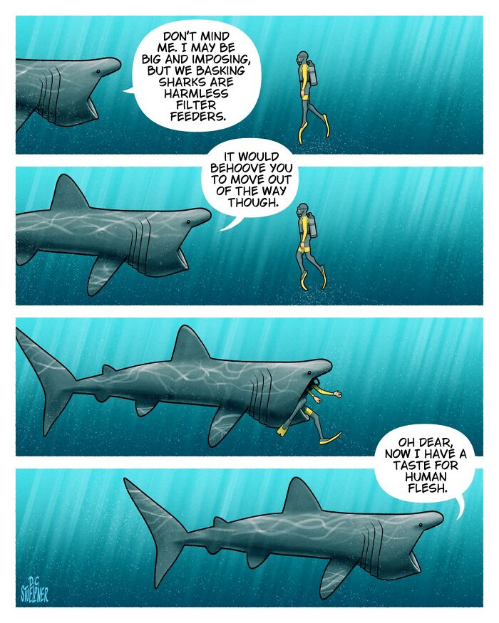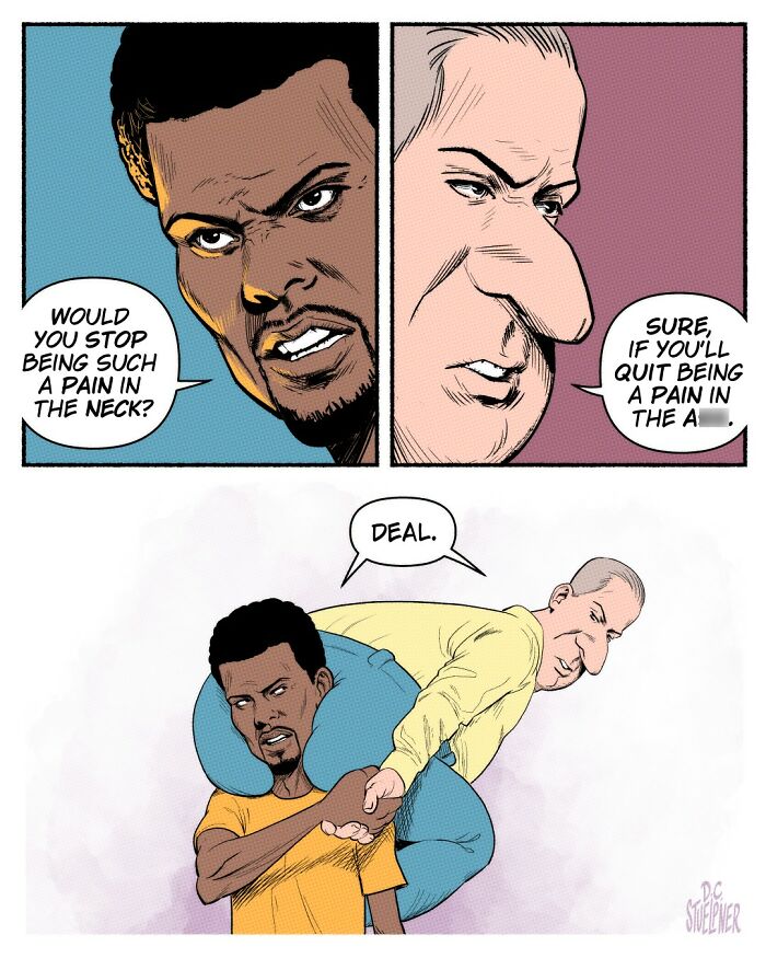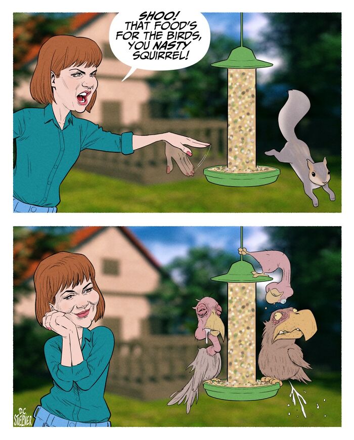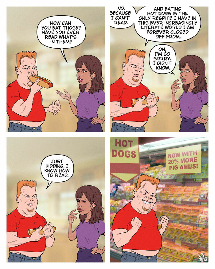 The series is filled with distinctive and memorable characters so we asked the artist about his creative process and how he developed these characters. The cartoonist shared that When I’m not parodying an already established character, I aim to make them look like regular, everyday people. I draw a lot of caricatures so I’m always searching for what makes someone unique. Even the most ordinary-looking person has something distinct about them it’s just a matter of noticing it. Creating a contrast between how someone looks and how they act or sometimes leaning into that contrast helps with the humor.