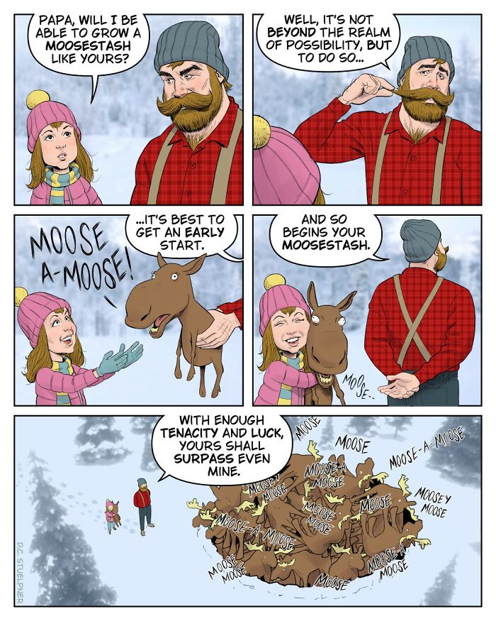 We’re excited to introduce a new artist making waves with his unique style D.C. Stuelpner Known for his quirky humor and surreal approach to art D.C. describes himself on Instagram as a Drawer of drawings, dumb comics, misshapen heads, and occasional body horror. Intrigued by his distinct style we learned more about his creative process the inspiration behind his comics and what makes his work stand out. We spoke with D.C. Stuelpner to learn more about how his journey into comics began. I loved newspaper comic strips from a young age and thought about creating one but I always struggled with coming up with the characters and building the world he shared. I made a few comics here and there but nothing consistent. Fast forward a lot of years and I’ve ended up drawing the occasional comic book written by others while also exploring other art forms like caricature and digital painting. It’s clear that his path to comic creation was a winding one but it’s what led him to develop the unique style he’s known for today. Please scroll down to explore his latest series packed with absurd twists peculiar humor and an occasional dark turn that makes his art so captivating and unexpected.
