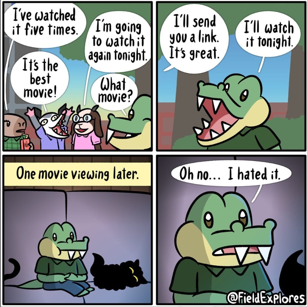 FieldExplores describes themselves simply as “your average video game enthusiast who draws lots of silly things” In a Reddit r/comics feature, the artist—also known affectionately as Grandma Field—explains that while they began with video game fan content (Mario, Pokémon), they eventually shifted to their creations: a loving animated crocodile duo and their friends reddit.com. These comics focus on themes like the generation gap in gaming, family bonding, navigating emotions, and small-but-significant life experiences.