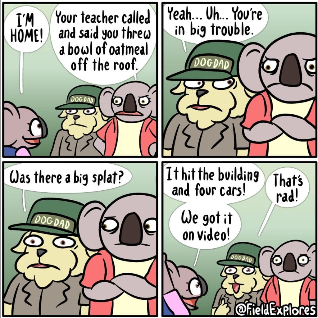 FieldExplores comics (often signed as Gator Days) is an Instagram-based comic artist who charms fans with short, punchy strips featuring playful animal characters and nostalgic video game cameos. Each comic is posted as a square image on their feed, often with light-hearted humor and emotional warmth. The artist regularly blends Pokémon and Nintendo-inspired fan art like Scorbunny, Fuecoco, and sometimes even Rick and Morty with original characters like Dad alligator August and his son Gustopher. These comics capture everyday moments, wholesome parent-child interactions, and gamer life, making them highly shareable across social media.