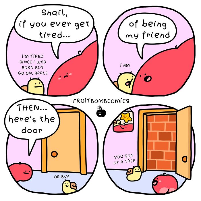If you’ve seen it before, you might already know about FruitBombComics by Simon SayHeySimon the charming comic series starring a very expressive apple. With straightforward yet witty humor Simon’s comics turn even the most ordinary moments into delightful surprises. Simon has been drawing these fruit-filled escapades for quite some time now and they never fail to bring a smile to readers’ faces. Whether it’s a goofy accident or a situation we all can relate to his comics show us that even the simplest moments can be enjoyable and entertaining.