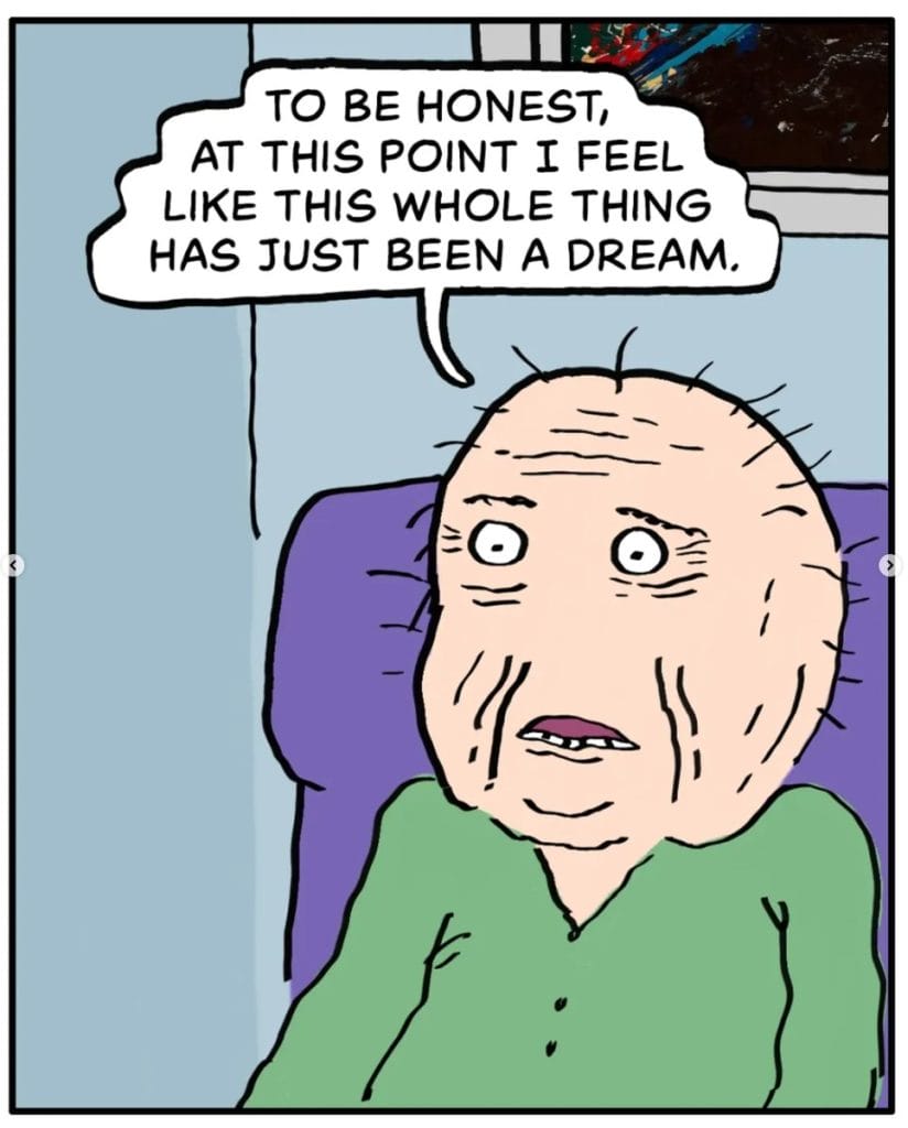 Contra’s comics often explore human flaws, existential dread, and the hilarity of everyday life. His characters may be silly or strange, but the situations they find themselves in are always rooted in something relatable. Whether he’s delivering a laugh-out-loud gag or a quiet, bittersweet reflection on growing older, Dave Contra’s work sticks with you long after you’ve scrolled past.