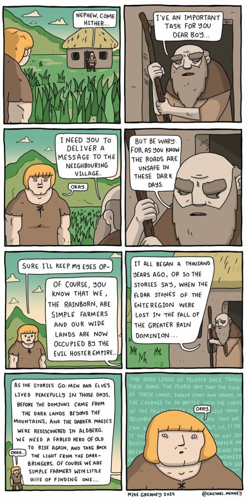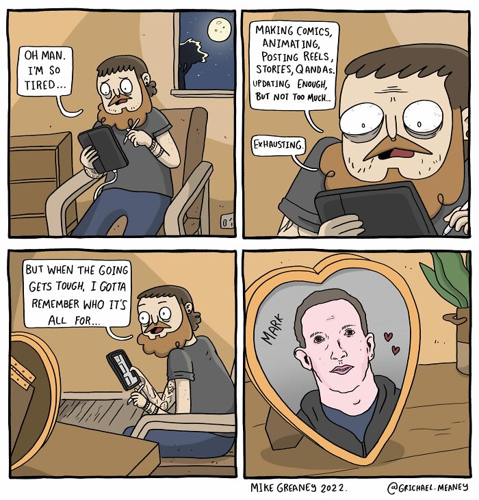 Mike Greaney shared a humorous and lighthearted look into his creative process when asked about his rituals before starting a new comic. Like all cartoonists, I first take a long pilgrimage to the throne of the LORD OF COMICS and present him with my idea. If he deems the idea worthy, I am allowed to create the comic and post it online. If he deems it unworthy, I must spend a week in the chamber of suffering. Weird system, I know, but it’s important to follow tradition Greaney joked. This playful approach showcases his fun personality and how he blends creativity with humor something that’s reflected in his work. For Greaney, the process may seem quirky, but it fuels the unexpected twists and laughs his comics deliver.