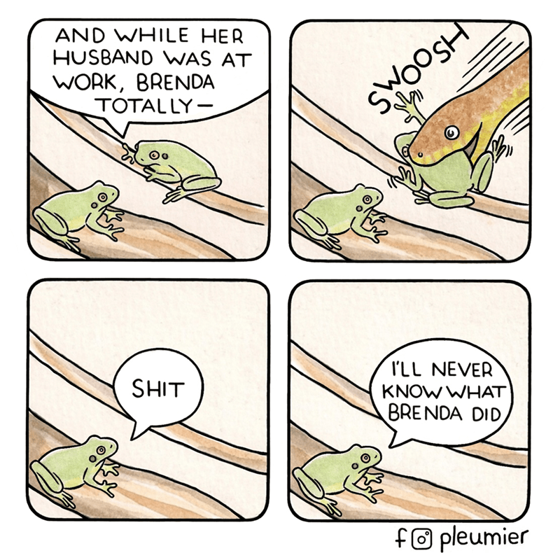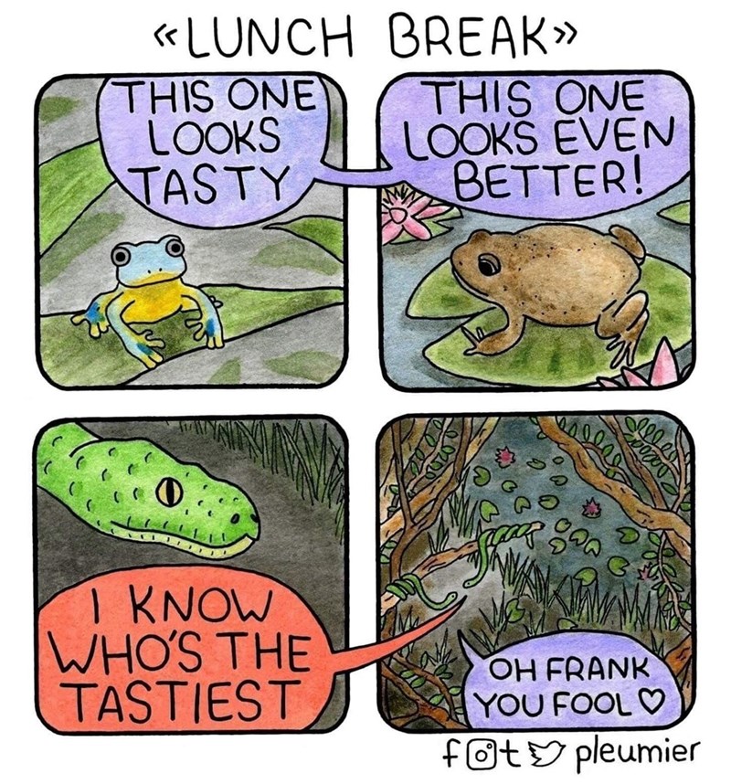 Through humor, Pleumier’s comics highlight the fascinating quirks of animal behavior. Her simple and whimsical art style, paired with human-like facial expressions on animals and plants, makes her work engaging for her audience of 7,075 Instagram followers. Pleumier’s comics are a fun and approachable way to learn about biology and nature, while also reminding us of the importance of protecting the biodiversity of our planet. Her work not only entertains but also strengthens our connection to the remarkable creatures we share the Earth with.