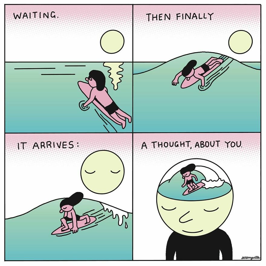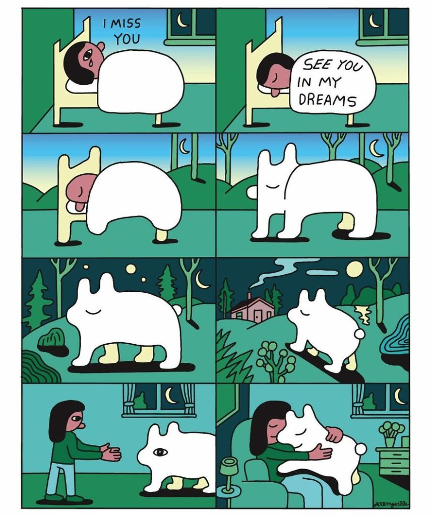 Jeremyville takes a unique approach to his comics treating them more like poetry or songs rather than traditional cartoons. I approach the comic stories more like a song or a poem rather than a throwaway gag cartoon. I don’t call them cartoons I think they’re something else. Like a short story or a scene from a movie. A vignette of a feeling. His creative process is deeply immersive. I often revisit them, pause, and look at each square for a while. I get lost in each frame’s world, then I move to the next frame. I like to spend time reading them slowly, getting lost in the feelings they create in me. I have no idea how others see them, but from the comments I get, I think it’s pretty similar to this. There’s a real, human connection to them. I love that it makes it all worthwhile.