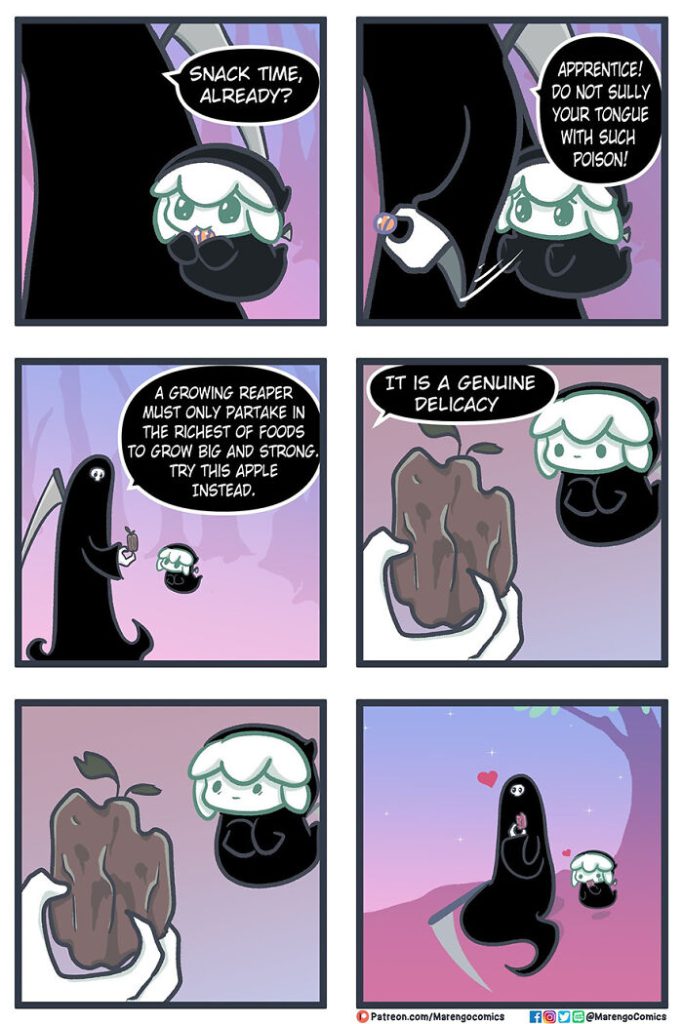 While her sheep comics remain a central part of her work, Marengo has recently expanded her creative portfolio to include story-driven comics. One series, featuring Death and his new Apprenticean unexpectedly optimistic lost soul has caught the attention of many readers. The unique dynamic between the two characters leads to adventures filled with self-discovery, as the Apprentice’s cheerful outlook helps soften Death’s usual perspective. Excited for what’s next, Marengo shared, I have so many more stories to tell. I’m excited to show you what’s in store. As she continues to explore new creative territories, her work promises to bring even more thought-provoking and heartwarming narratives to her audience.
