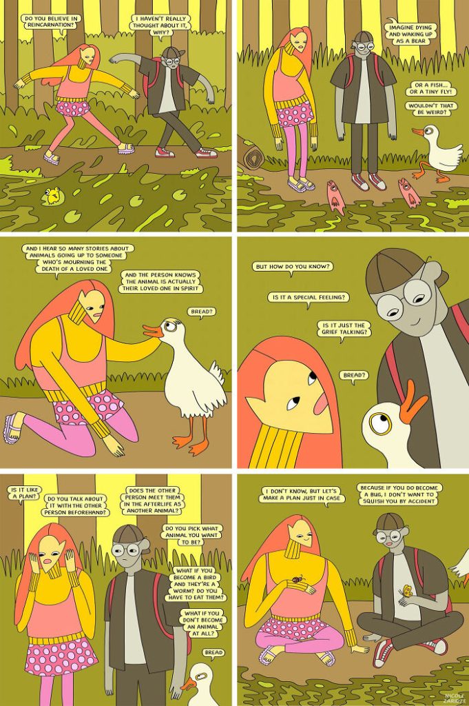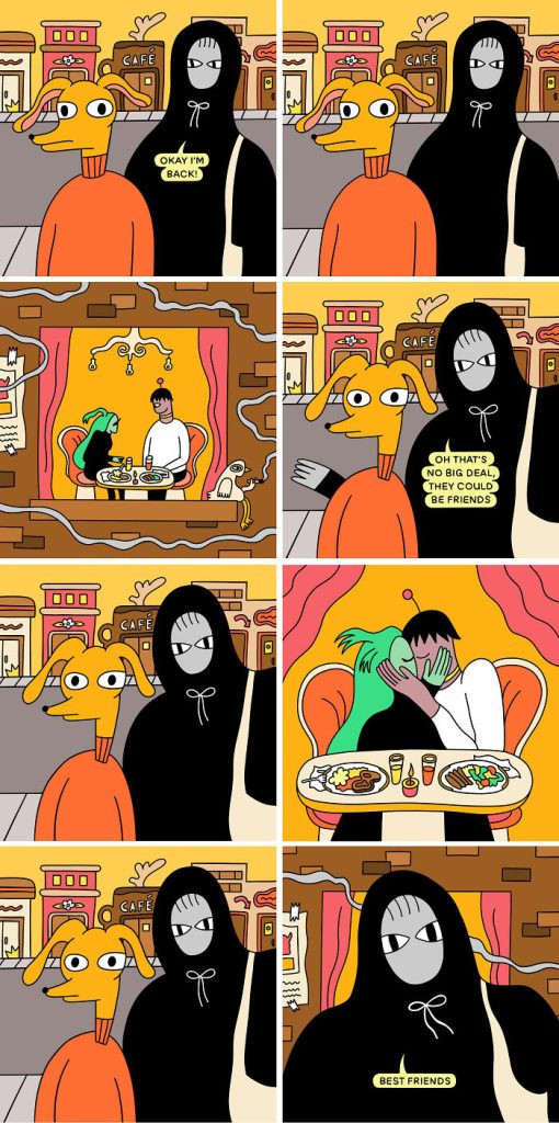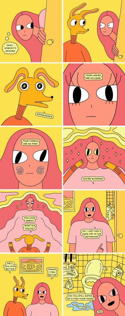 For Zaridze, her art also serves as an outlet. As I mentioned in my process, it’s a way of picking and choosing what I share with an audience and what stays with me. The act of editing and revising ideas adds a whole level of planning that motivates me to keep sharing. She also enjoys creating characters who face these challenges. It takes me out of myself a little bit and helps me see things from an outside perspective. Sometimes, that shift brings in humor and wit which I love using when tackling these kinds of topics.