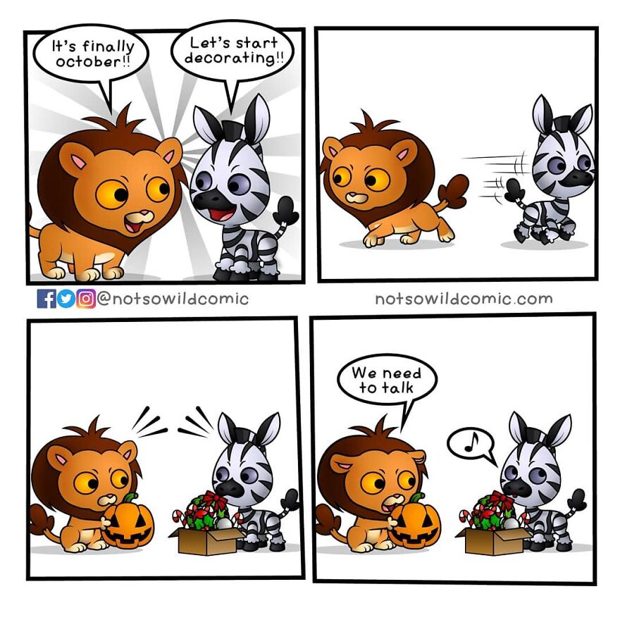 Brisbane-based author Douglas Grillet and artist Elias Martinez have found their niche in the webcomic world with Not So Wild a series that perfectly balances friendship cuteness food and fun all wrapped in a child-friendly package with just enough sarcasm to keep adults entertained. When Bored Panda had the opportunity to chat with the duo, they shared insight into their creative process and collaboration. Grillet explained I write, and Elias draws. Normally, I create a small script with scene descriptions. Elias takes the time to read and suggest changes; as an artist, he understands how to visually convey an idea better than I do. We constantly discuss how to express emotions whether a character is frustrated, annoyed, or excited, and how to showcase it effectively. With Grillet’s storytelling and Martinez’s artistic touch Not So Wild continues to charm audiences of all ages proving that heartwarming, family-friendly comics can still have a clever edge.