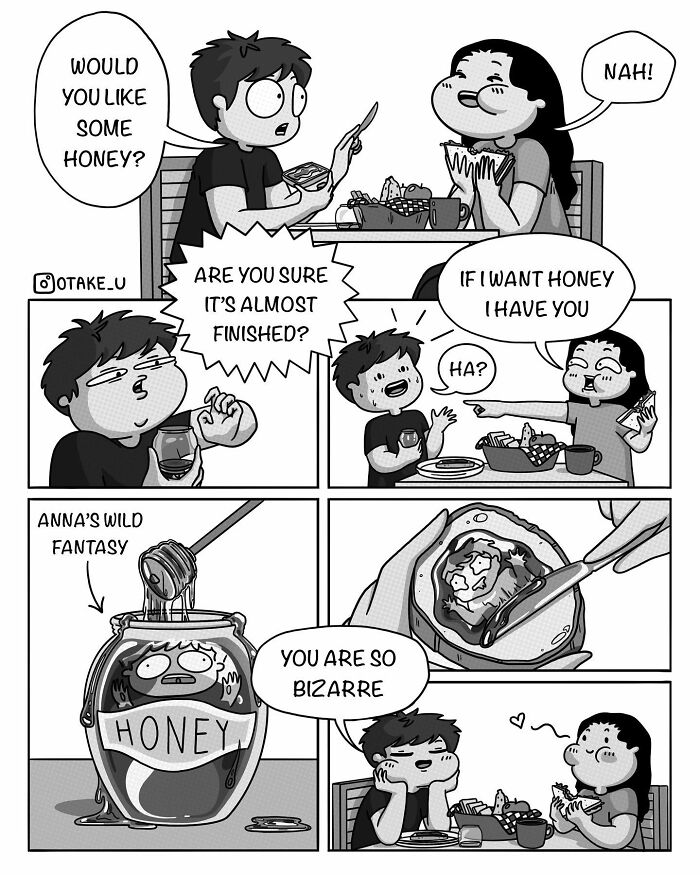 From the seemingly mundane routine of morning coffee to more sensitive topics, Anna’s art reminds us that the smallest moments often create the most memorable stories. Her comics are full of those shared sometimes awkward yet always funny moments that come with being in a partnership. Whether it’s squabbling over couch space or the creative and not-so-helpful ways her boyfriend tries to wake her up Anna’s comics hit home for anyone who’s been in a relationship where the love is balanced by witty banter and savage comebacks. Her work is a playful and honest reflection of life with a partner, making her comics feel like the inside joke we all share. Anna Otake’s art proves that in the end it’s the absurd moments that often make the best stories and it’s these little details that connect us all.