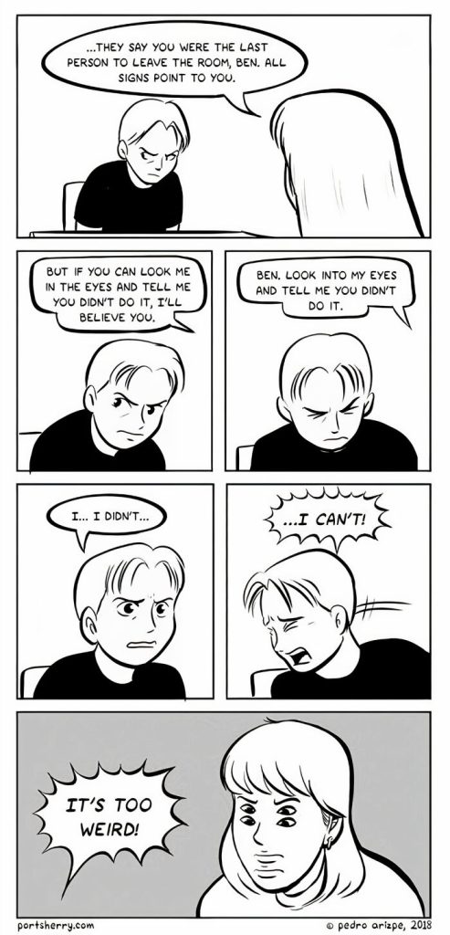 When asked about the first comic he ever created, Pedro Arizpe recalled, Yes, it’s the first one on my website simply called PAC-MAN from 15 years ago. He explained that many elements of his style were already present, including real-life observations what-if scenarios, and exploring the hidden inner workings of everyday things.