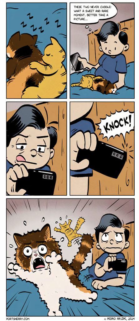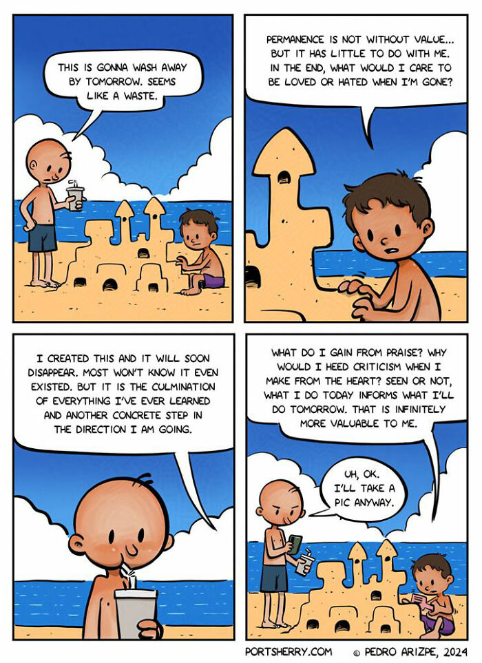 Port Sherry is a webcomic created by Pedro Arizpe known for its sharp wit and quirk often surreal humor. The comic touches on a wide range of topics from the simple oddities of everyday life to more abstract and thought-provoking scenarios. Since launching in 2010, Pedro has built a dedicated online audience boasting over 90,000 followers on Instagram. Drawing inspiration from legendary cartoonists like Walt Kelly, Ernie Bushmiller, and Bill Watterson Pedro’s work is characterized by clean lines, clever visual gags, and storytelling that strikes a perfect balance between humor and depth. Each comic is a mix of laughs and insights encouraging readers to pause think and maybe even see the world from a different perspective. Scroll down for a dose of humor and prepare to chuckle at the surreal side of life.