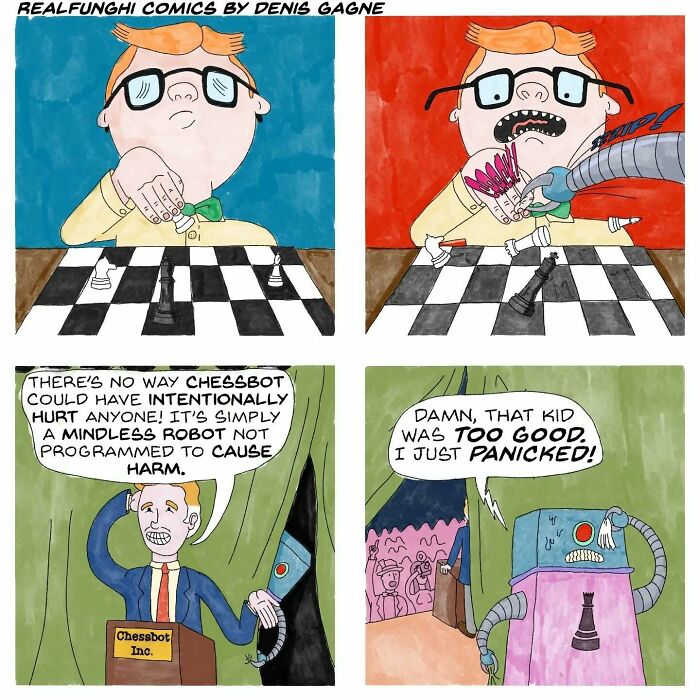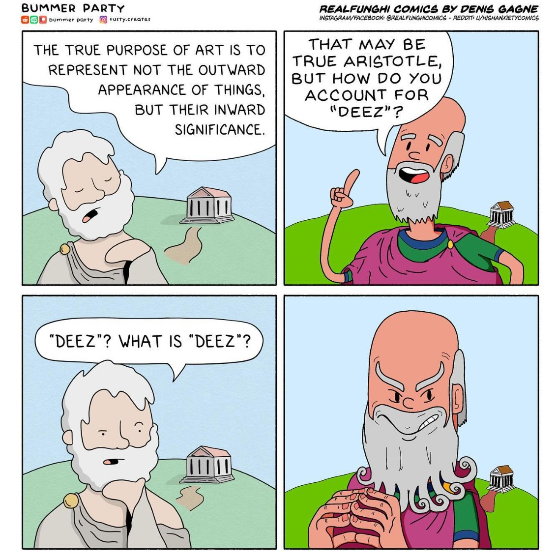 Dennis Gagne, the creative mind behind Real Funghi Comics perfectly sums up his approach to humor. We live in a ridiculous world and can’t help but engage in it ridiculously. This playful and offbeat perspective shines through in every comic he creates. Drawing from his love of Kids in the Hall, Mel Brooks, and David Lynch films, Dennis has developed a unique comedic style deeply rooted in surrealism and satire. He constantly observes the everyday absurdities around him transforming into quirky unexpected comics that resonate with those who appreciate the bizarre and the outlandish. For Gagne, no topic is too dark or strange to be seen with a sense of humor. His comics offer a refreshing perspective on life’s oddities providing a hilarious escape for anyone who enjoys laughing at the peculiarities of the world.