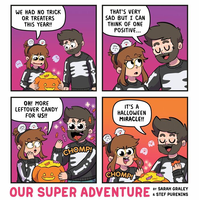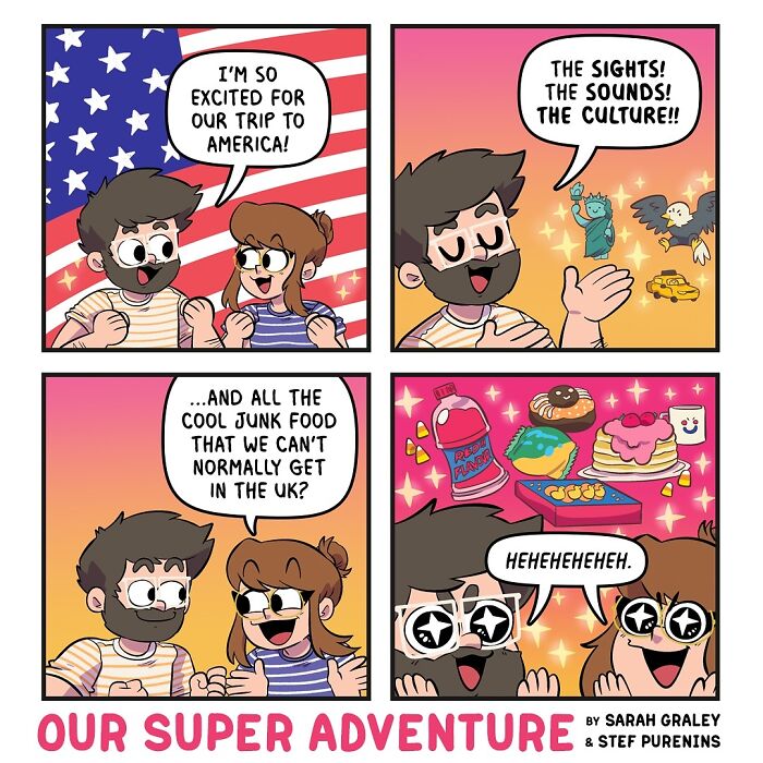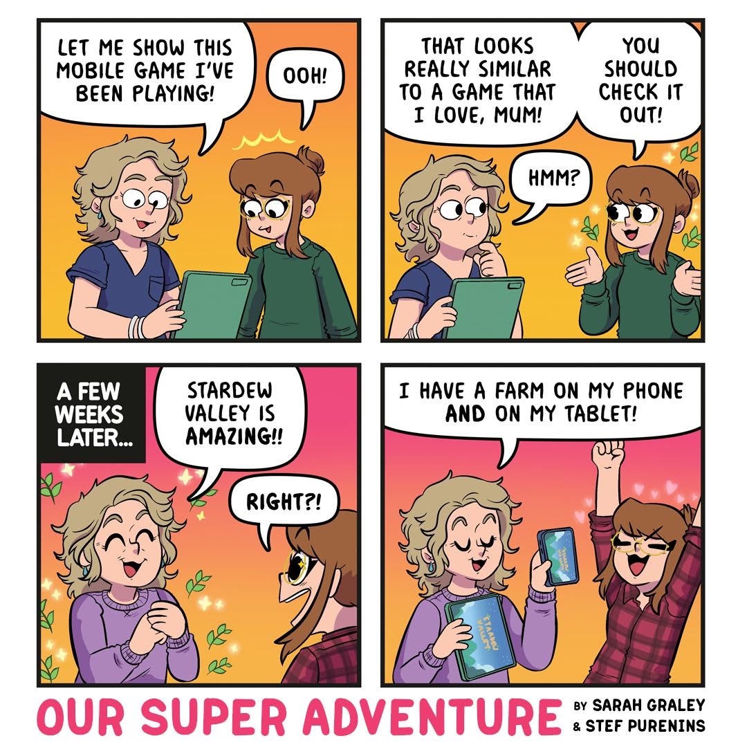 Sarah Graley created Our Super Adventure to capture the small adorable moments from her relationship with Stef and the comics have struck a chord with readers. She often hears from fans at comic conventions and online who express how much they relate to the playful lighthearted moments portrayed in the comics. I think there are a lot of playful nerdy relationships in the world and it’s nice to know there are so many people out there who like me are in relationships with their best pal and share a friendly sense of humor Sarah shared. Her work reflects the joy of companionship offering a glimpse into the quirky, fun side of relationships that fans of all kinds can appreciate.