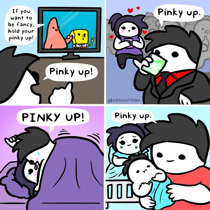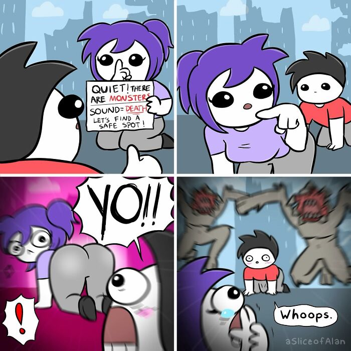 In his Instagram bio, Alan simply says, “I create comics. Whatever stupid thing comes to mind generally works.” His comics often take everyday situations and twist them in unexpected ways, making them relatable yet hilariously offbeat. His commentary is both funny and thought-provoking, lifting his work from just amusing illustrations to something with deeper meaning.