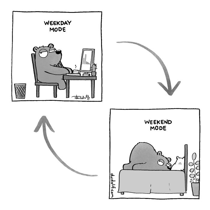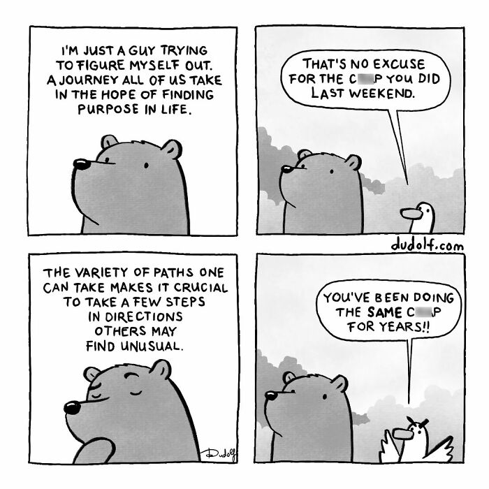 Gergely Dudas the creative mind behind the comic series Dudolf shared some insights into what he believes makes his work so effective in delivering humor. According to the artist Relatable and self-aware comics are always very funny. I enjoy turning small daily struggles into comics. I hope they make it a tiny bit easier for others to deal with them. Seeing my most common character the Bear in a relatable situation might give the feeling of not being alone in it.