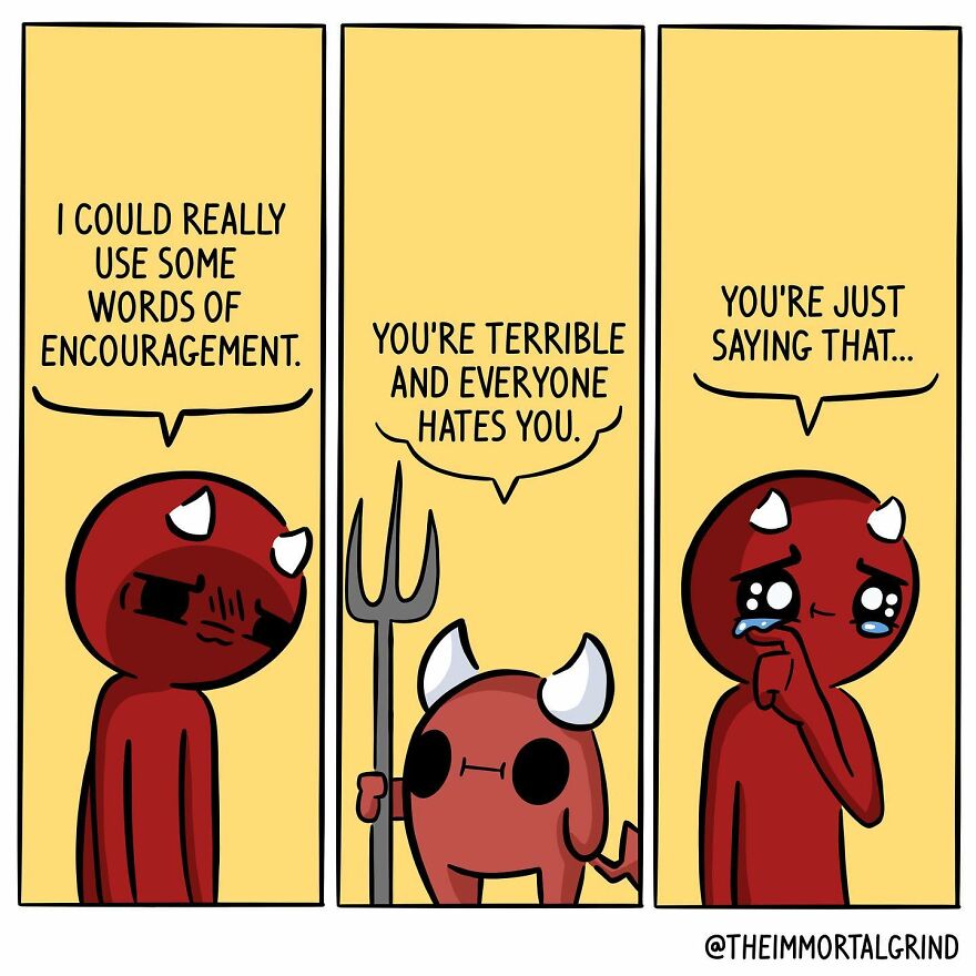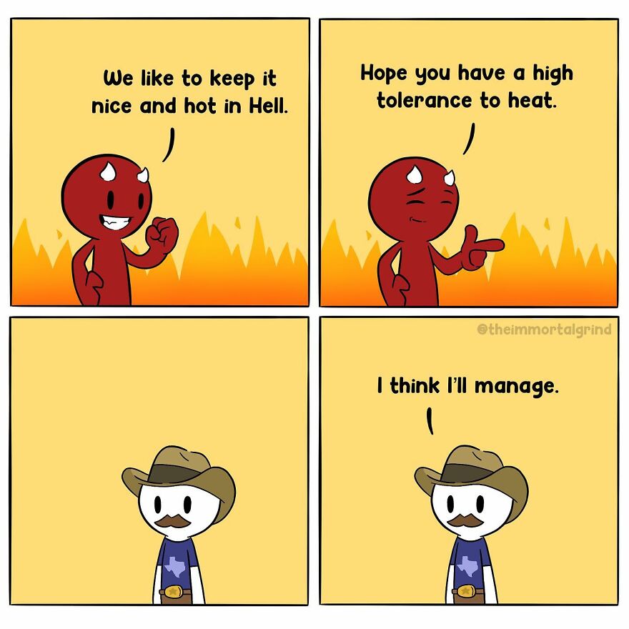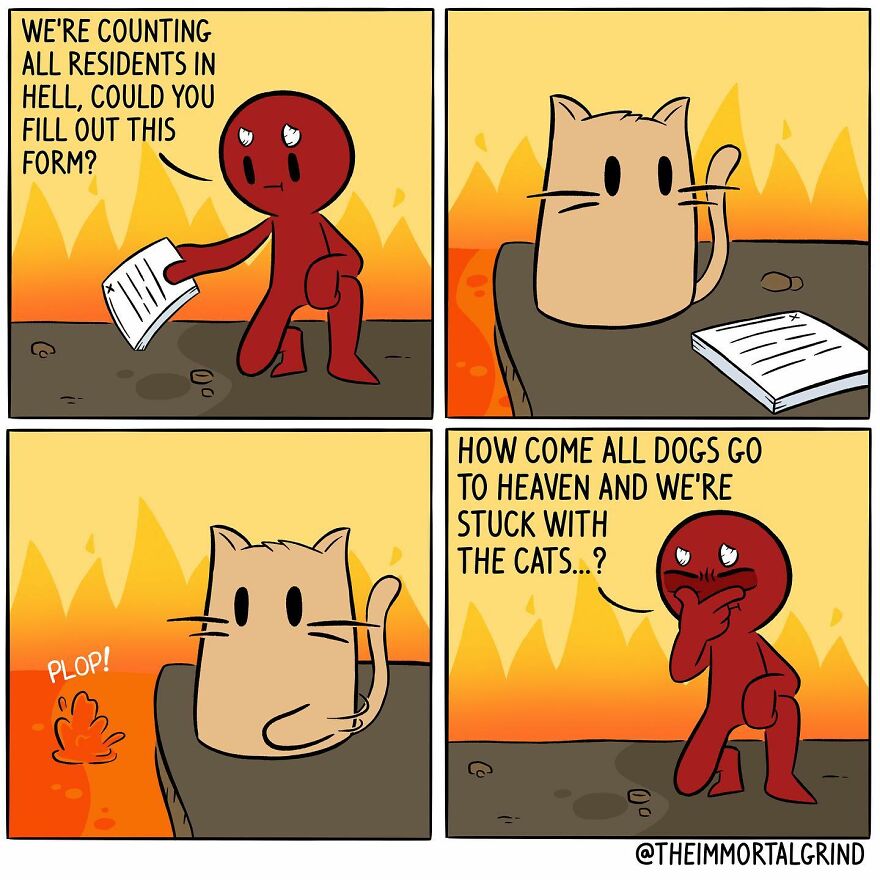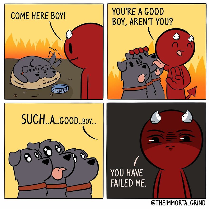 What if you found yourself in hell after the end of your journey? While most of us are certain that we’ll all leave this world one day, it’s tough to imagine what awaits us on the other side truly. Hell and heaven are two of the most widely known possibilities for the afterlife, and artist Burly, creator of the comic series The Immortal Grind, explores these themes in his unique and often humorous way. Burly’s comics often focus on hell and its quirky inhabitants including characters like the Grim Reaper the Devil and his small but mischievous assistants. While the subject matter might sound dark, Burly’s lighthearted approach ensures his comics are full of humor and charm, guaranteed to bring a smile to your face. If you’re a fan of his work, be sure to check out part 1 of the ongoing series for more hilarious takes on the afterlife.