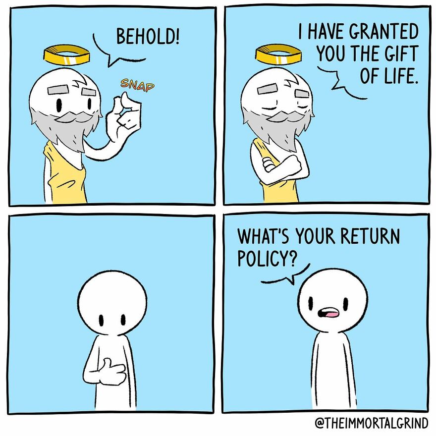 His darkly humorous take on the afterlife where daily life mirrors the grind of our world provides a unique way to reflect on the unexpected twists life and death could bring. While we may not know what the future holds Burly’s comics offer a reminder that even in the face of the unknown a little humor can go a long way.