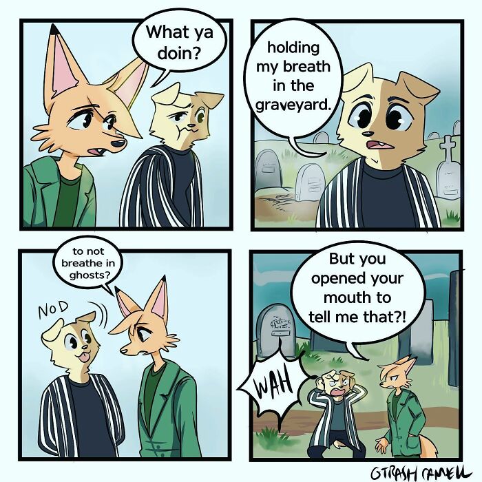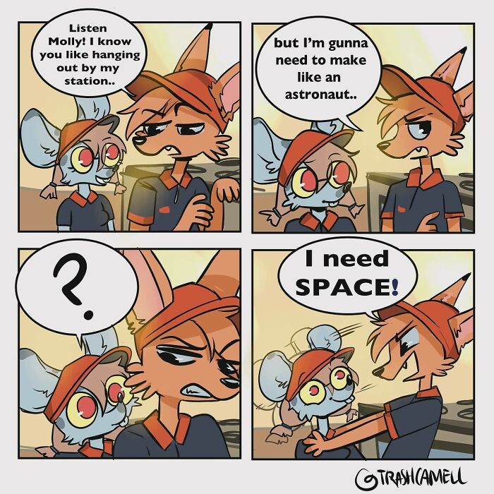 Basura’s animals are incredibly expressive, showcasing a wide range of emotions. We asked her to share her process for bringing these characters to life. I love cartoons, so my facial expressions tend to be goofy she explained. I also don’t like to stay ‘on model’; my characters can change from moment to moment, and I enjoy that. It helps to act out the emotions with my face as I draw it brings the expressions to life on paper. Her approach adds a unique and lively touch to her comics, making each character feel dynamic and full of personality.