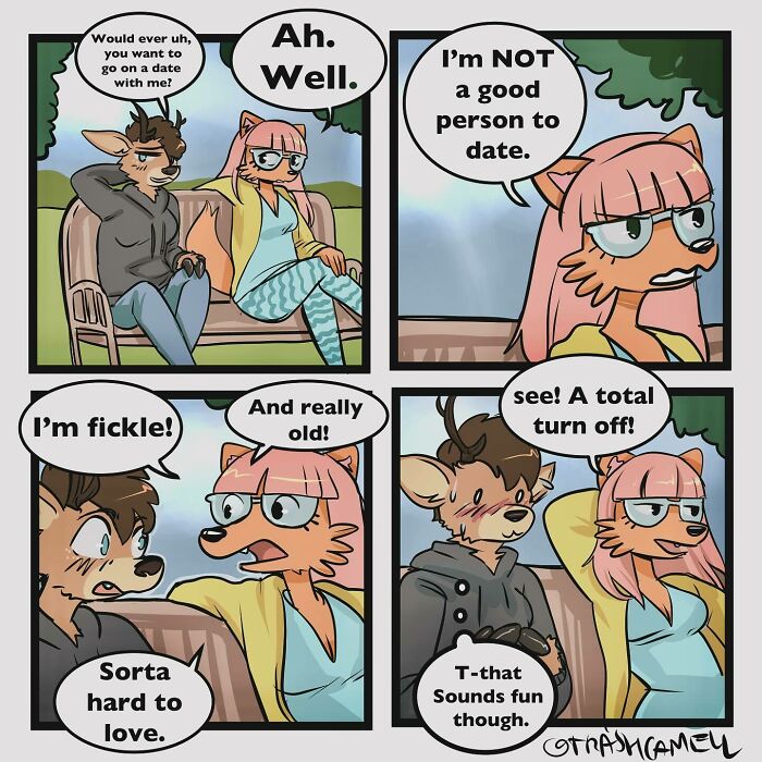 Today, we’d like to introduce you to Basura, a comic artist who creates cartoons featuring animals acting like humans. The artist shared a bit about the concept. The characters are animals on a planet similar to ours that developed the same way Earth did. So now you have foxes driving cars and paying taxes instead of humans. Basura explores themes like relationships and friendships, often illustrating situations inspired by her own life. These delightful comics blend animal antics with human humor and at times they can get a little spicy. If you’re interested in seeing the full range of her work be sure to check out Basura’s social media pages for more.