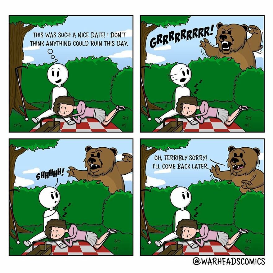 There’s something oddly satisfying about reading comics that reflects our everyday lives. It’s like a form of escape, yet sometimes these comics mirror our reality so closely that the only difference is whether the events are fictional or not. And still, we can’t help but dive into them to pass the time. The Warheads comics capture the misadventures of two characters, Jim and Brian, as they navigate their daily lives. These comics often stretch beyond a single punchline, with some stories extending over multiple panels and even spilling into other narratives. The characters feel alive with their personalities and quirks, making them all the more relatable and enjoyable to follow.