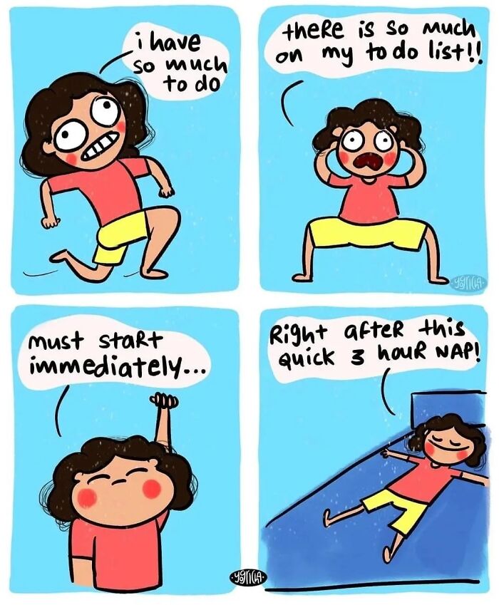 Meet Yogricha Verma an Indian illustrator whose comics beautifully capture the everyday experiences of modern women. Through her charming and relatable artwork, Yogricha brings a touch of humor and warmth to the ups and downs of womanhood. Her journey into comics began while working on her resume where she discovered her love for creating art that made people feel good about themselves. Initially starting her career as a motion designer, Yogricha soon found her true passion in graphic design art. Her comics focus on self-love and the simple joys of life, striking a chord with her audience. With every illustration, she offers a lighthearted perspective on the daily struggles and small victories that many women can relate to. Scroll down to enjoy Yogricha’s humorous take on life’s little moments.